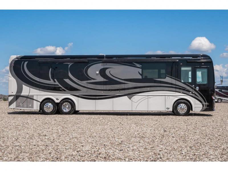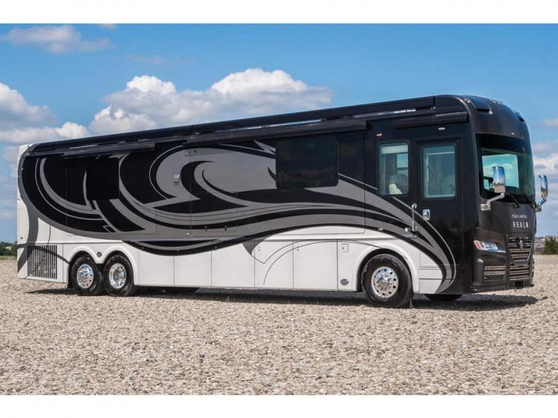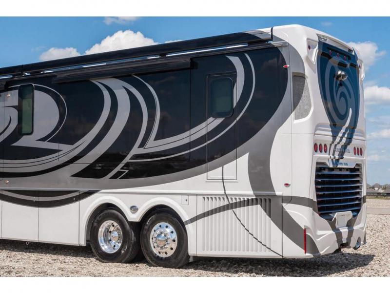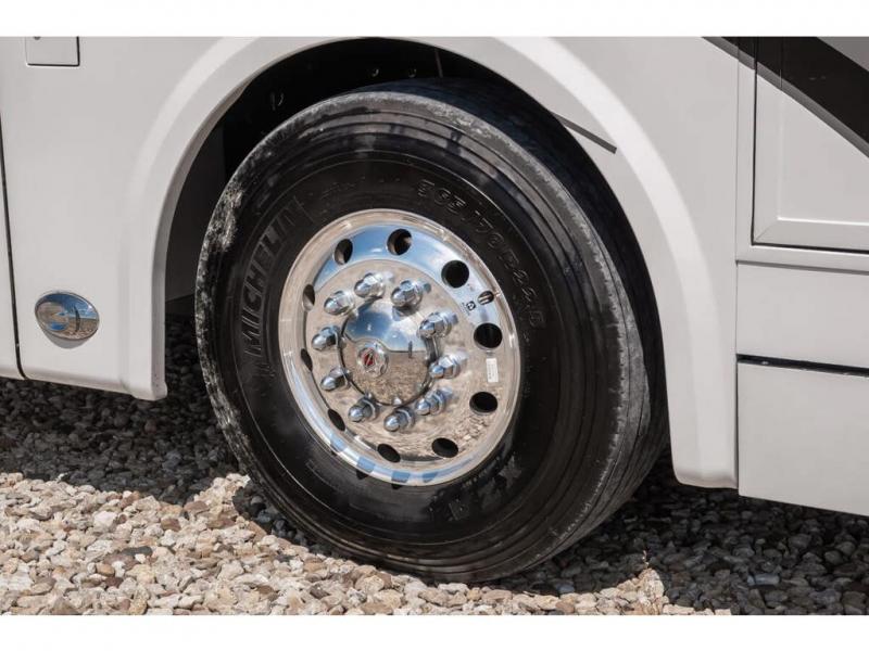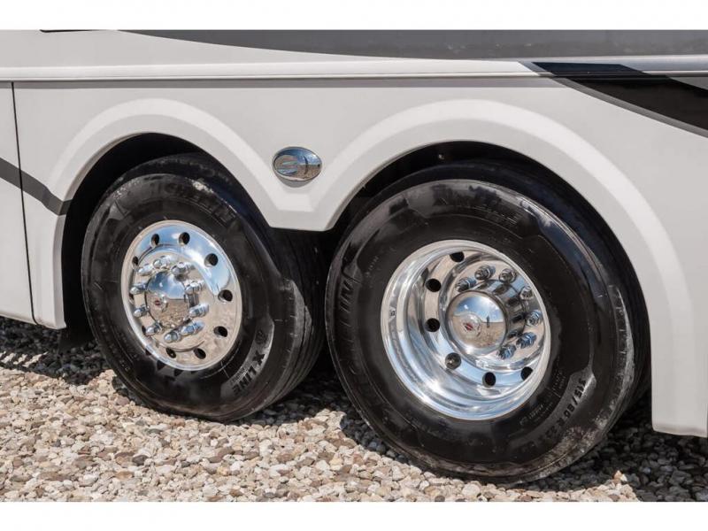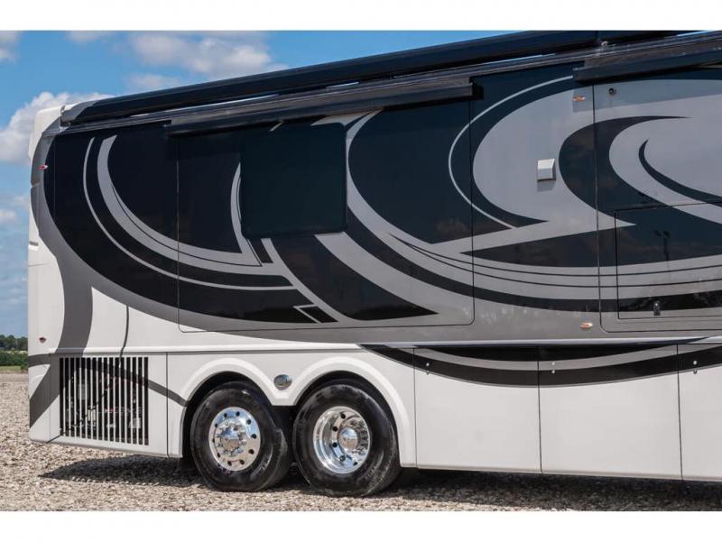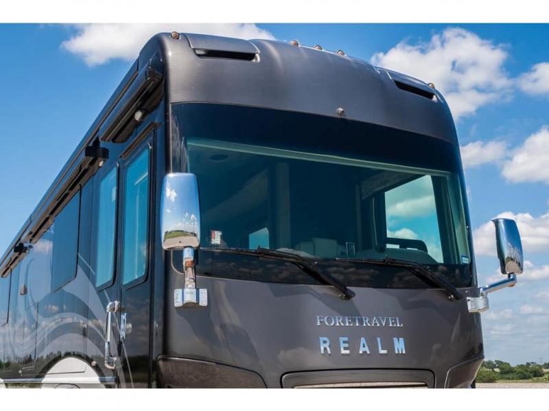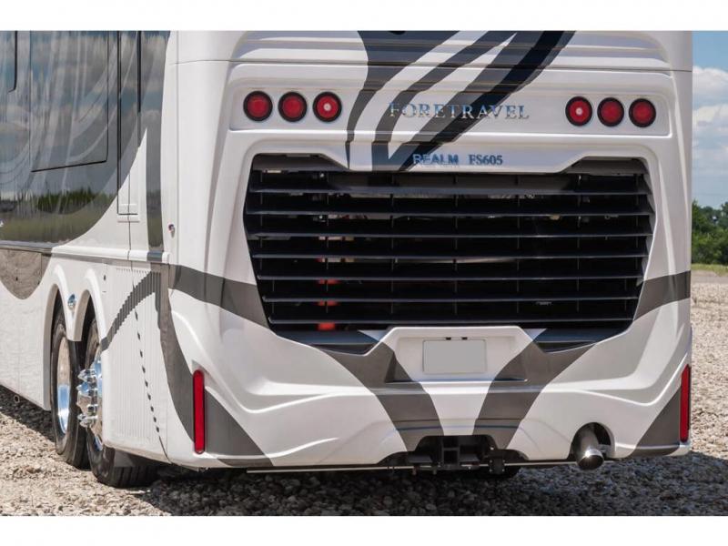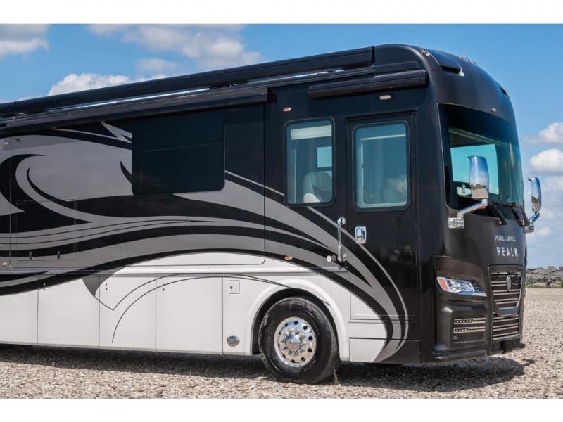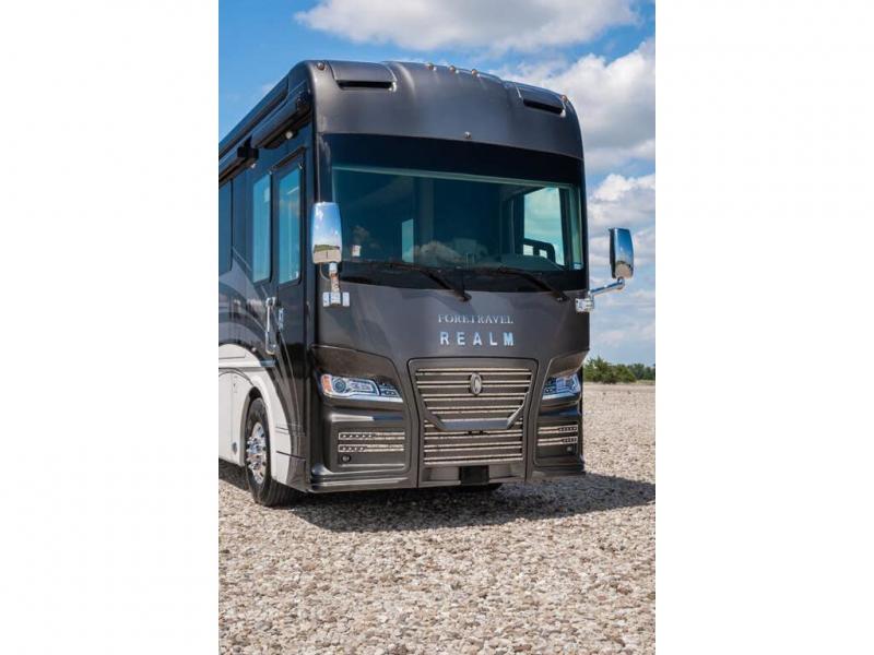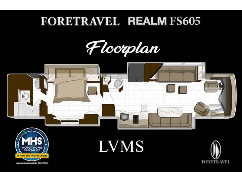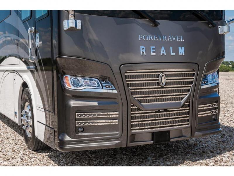 The 2024 Foretravel Realm FS6 is, not only, the premium luxury Motor-Coach on the market today, but the only coach in the industry built on Spartan's Premier K4 chassis offering incomparable ride, handling, and safety. This extraordinary motor coach is the Luxury Villa Master Suite (LVMS) floor plan featuring the incomparable Polished Stone and Cambridge interior décor package and is perfectly paired with the Armor exterior paint scheme with Diamond Pearl that you simply must see in person! The LVMS floorplan is unlike any luxury motor coach in the world; offering multiple living & dining arrangements highlighted by the dual power-adjustable dinette tables, an extra-long lounger, and a master suite arrangement that sets the LVMS apart from all other floor plans. You will find spacious wardrobes, a lavish custom-built vanity and chair, extra-large nightstands, convenient washer/dryer to closet accessibility, and exceptional storage throughout this one-of-a-kind floor plan. You will also find a multi-function digital dash and instrumentation display system, the Premier Steer adjustable driver's assist system, a Navigation system with in-dash and additional passenger side monitor, Total Coach Monitoring System, tire pressure sensors, beautiful tile floors and back-splashes, quartz counter tops throughout, ultra-high-end appliances, LED accent lighting throughout, a beautiful curved step entry way, Braun extra heavy duty power entrance step, a designer entry door with LED accent lighting, iPad launch system, 4K TVs where applicable, upgraded cab stereo and sub-woofer, heated and cooled pilot and co-pilot seats, recessed and upgraded ceiling features in the galley, recessed cook top, Mobile Eye Collision Avoidance System, a "Bird's Eye View" camera system for the ultimate in coach visibility along with an additional 3-camera coach monitoring system with power rear camera, dual integrated power awnings, power entry door awning, exterior entertainment center, (2) electric sliding cargo trays, exterior freezer, full coach and multi-color LED ground effect lighting package, Xtreme-Schemes full body paint exterior with Armor-Coat sprayed protection below windshield, all new chrome grill and accent package, (2) 2800 watt inverters, electric floor heat, (2) solar panels, dishwasher drawer, HD satellite and WiFi Ranger. The Realm FS6 rides exclusively on the all-new Spartan® K4 chassis. The K4 is not only massive in stature but boasts a best-in-class 20,000 lb. Independent Front Suspension, Premier Steer (adjustable steering control system), a Torqued-Box Frame, a passive steering rear tag axle for incomparable handling and maneuverability as well as the Spartan’s Advanced Protection System® which includes OnGuard Active™ a collision mitigation system with adaptive cruise control, Cummins Connected Diagnostics™, electronic stability control, and automatic traction control. You will know instantly, once behind the wheel of a Realm FS6, that this chassis is truly a cut above all other luxury motor coach chassis. It is powered by a Cummins X15 605HP diesel. You will also find additional advanced safety features on a Realm FS6 including a fire suppression system for the engine, Tyron Bead-Lock wheel safety bands, and steel construction rather than an aluminum cage found in the competition. You will also enjoy the ultimate in slide-out room fit and finish. These slides are undoubtedly head and shoulders above the competition. They feature pneumatic seals that provide a literal airtight seal completely around the entire slide-out room regardless of slide position for the premium in fit, finish, and function. They also feature a power drop-down flooring system that gives the Realm not only a flat-floor when extended, but a true flat floor when retracted as well. (No carpet lips, uneven floor surfaces, damaging rollers, poorly sealed rubber gaskets, etc.) The Realm also features a flat floor bedroom to master bath transition.