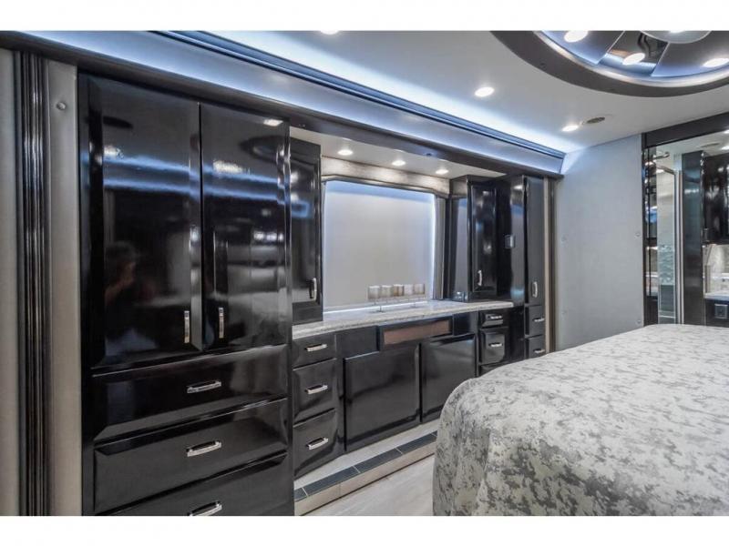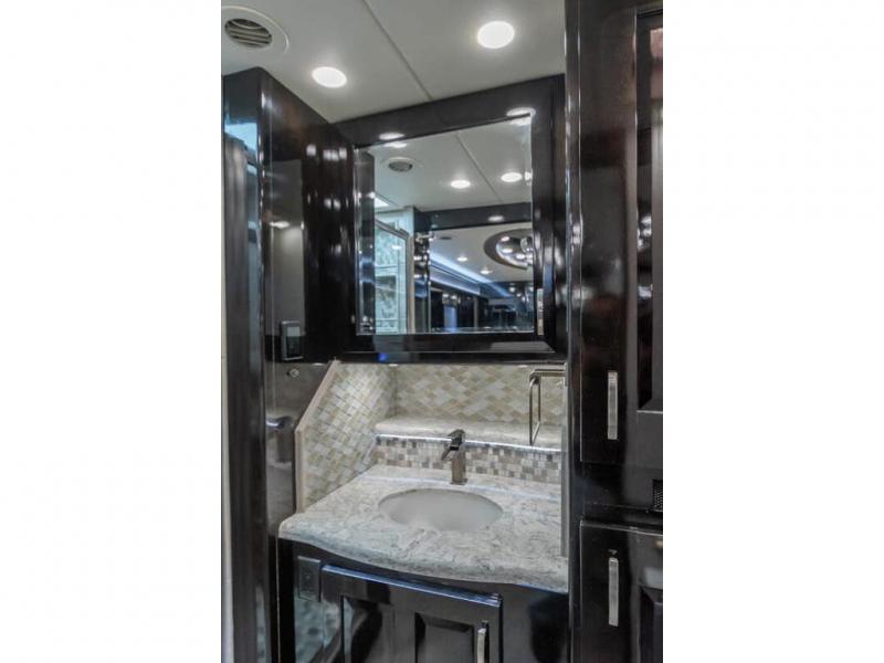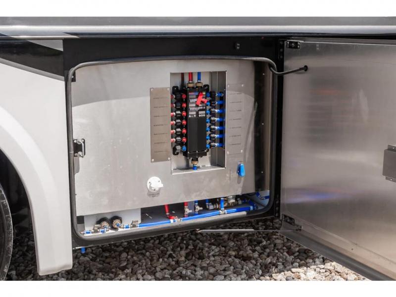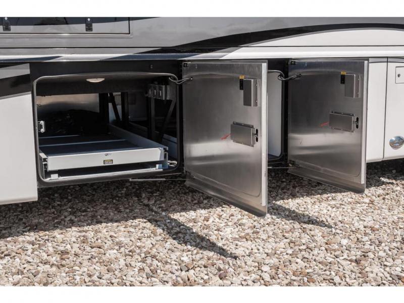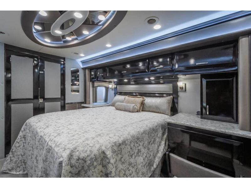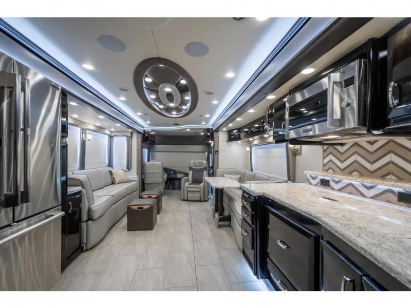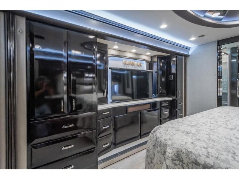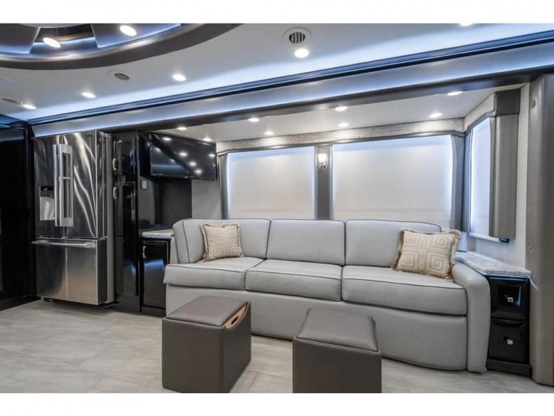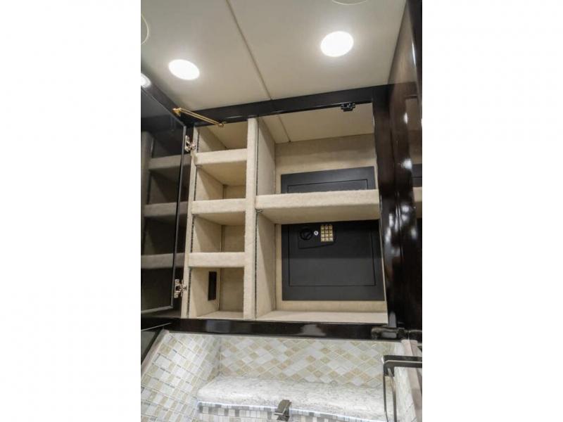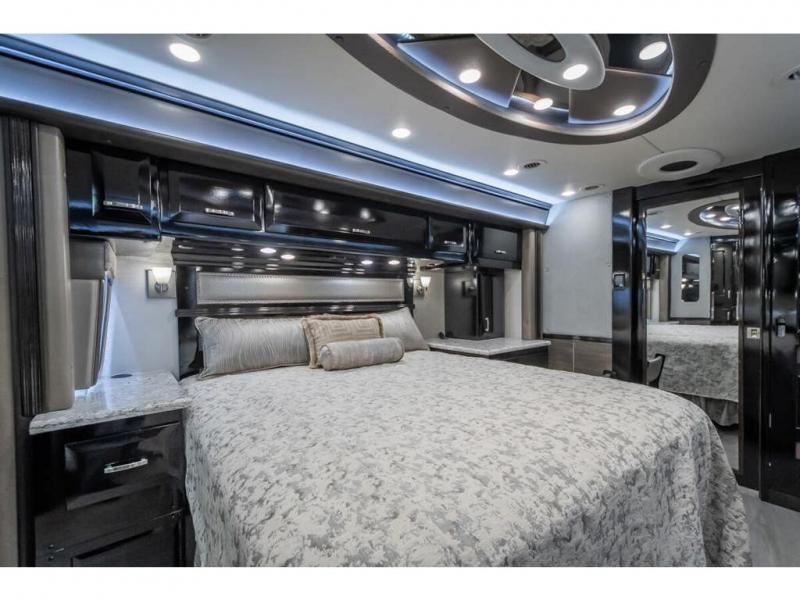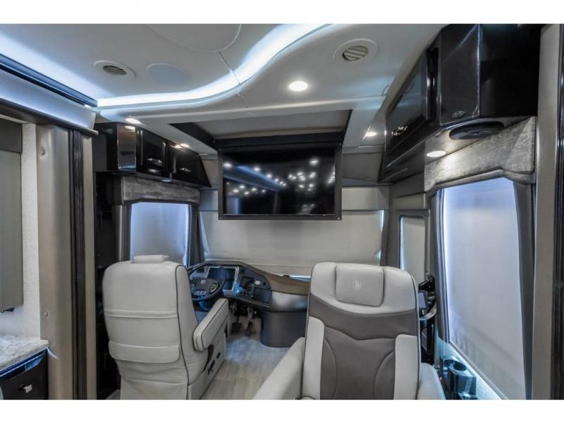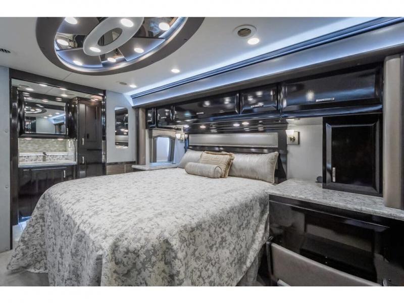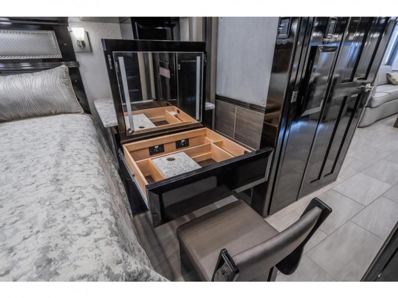 The 2024 Foretravel Realm FS6 is, not only, the premium luxury Motor-Coach on the market today, but the only coach in the industry built on Spartan's Premier K4 chassis offering incomparable ride, handling, and safety. This extraordinary motor coach is the Luxury Villa Master Suite (LVMS) floor plan featuring the incomparable Polished Stone and Cambridge interior décor package and is perfectly paired with the Armor exterior paint scheme with Diamond Pearl that you simply must see in person! The LVMS floorplan is unlike any luxury motor coach in the world; offering multiple living & dining arrangements highlighted by the dual power-adjustable dinette tables, an extra-long lounger, and a master suite arrangement that sets the LVMS apart from all other floor plans. You will find spacious wardrobes, a lavish custom-built vanity and chair, extra-large nightstands, convenient washer/dryer to closet accessibility, and exceptional storage throughout this one-of-a-kind floor plan. You will also find a multi-function digital dash and instrumentation display system, the Premier Steer adjustable driver's assist system, a Navigation system with in-dash and additional passenger side monitor, Total Coach Monitoring System, tire pressure sensors, beautiful tile floors and back-splashes, quartz counter tops throughout, ultra-high-end appliances, LED accent lighting throughout, a beautiful curved step entry way, Braun extra heavy duty power entrance step, a designer entry door with LED accent lighting, iPad launch system, 4K TVs where applicable, upgraded cab stereo and sub-woofer, heated and cooled pilot and co-pilot seats, recessed and upgraded ceiling features in the galley, recessed cook top, Mobile Eye Collision Avoidance System, a "Bird's Eye View" camera system for the ultimate in coach visibility along with an additional 3-camera coach monitoring system with power rear camera, dual integrated power awnings, power entry door awning, exterior entertainment center, (2) electric sliding cargo trays, exterior freezer, full coach and multi-color LED ground effect lighting package, Xtreme-Schemes full body paint exterior with Armor-Coat sprayed protection below windshield, all new chrome grill and accent package, (2) 2800 watt inverters, electric floor heat, (2) solar panels, dishwasher drawer, HD satellite and WiFi Ranger. The Realm FS6 rides exclusively on the all-new Spartan® K4 chassis. The K4 is not only massive in stature but boasts a best-in-class 20,000 lb. Independent Front Suspension, Premier Steer (adjustable steering control system), a Torqued-Box Frame, a passive steering rear tag axle for incomparable handling and maneuverability as well as the Spartan’s Advanced Protection System® which includes OnGuard Active™ a collision mitigation system with adaptive cruise control, Cummins Connected Diagnostics™, electronic stability control, and automatic traction control. You will know instantly, once behind the wheel of a Realm FS6, that this chassis is truly a cut above all other luxury motor coach chassis. It is powered by a Cummins X15 605HP diesel. You will also find additional advanced safety features on a Realm FS6 including a fire suppression system for the engine, Tyron Bead-Lock wheel safety bands, and steel construction rather than an aluminum cage found in the competition. You will also enjoy the ultimate in slide-out room fit and finish. These slides are undoubtedly head and shoulders above the competition. They feature pneumatic seals that provide a literal airtight seal completely around the entire slide-out room regardless of slide position for the premium in fit, finish, and function. They also feature a power drop-down flooring system that gives the Realm not only a flat-floor when extended, but a true flat floor when retracted as well. (No carpet lips, uneven floor surfaces, damaging rollers, poorly sealed rubber gaskets, etc.) The Realm also features a flat floor bedroom to master bath transition.