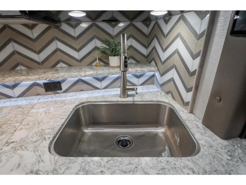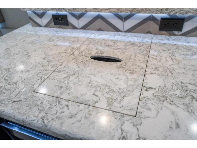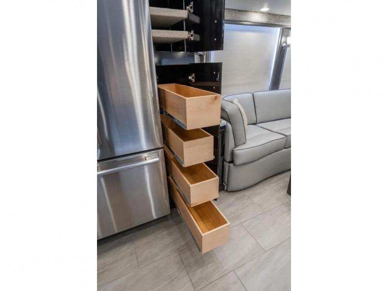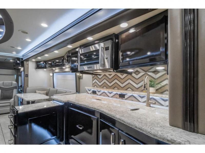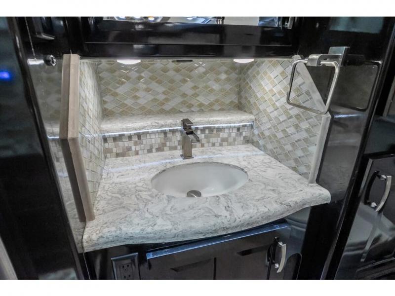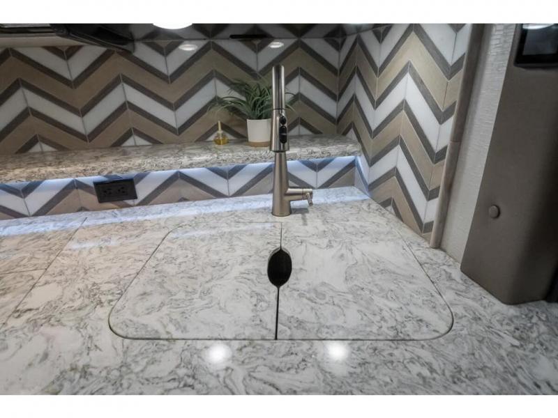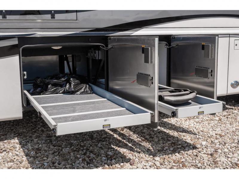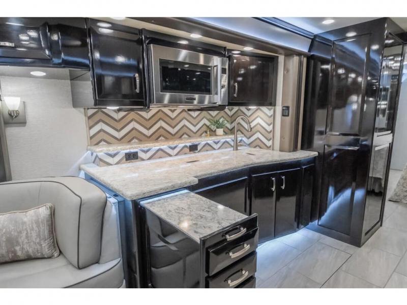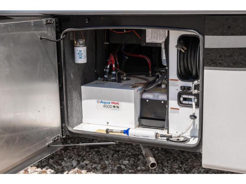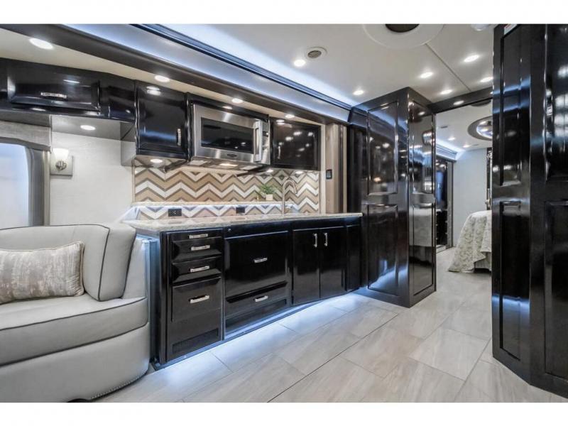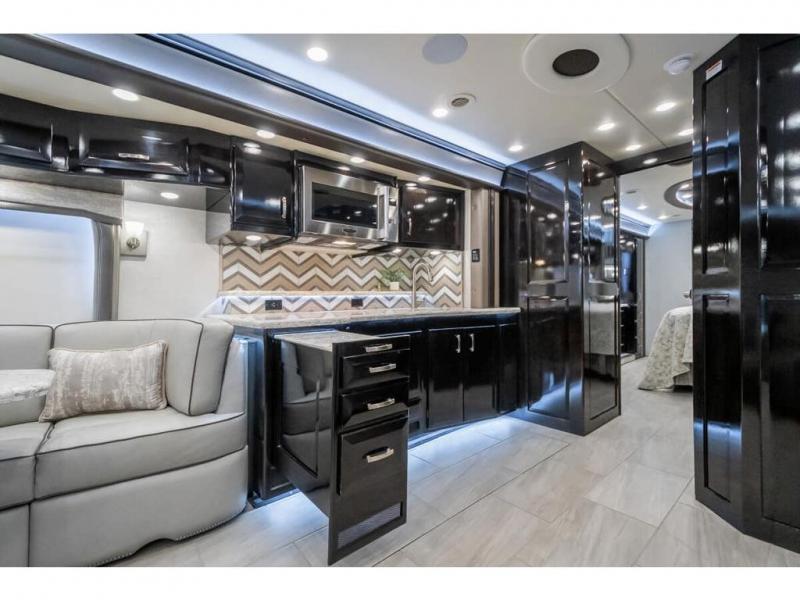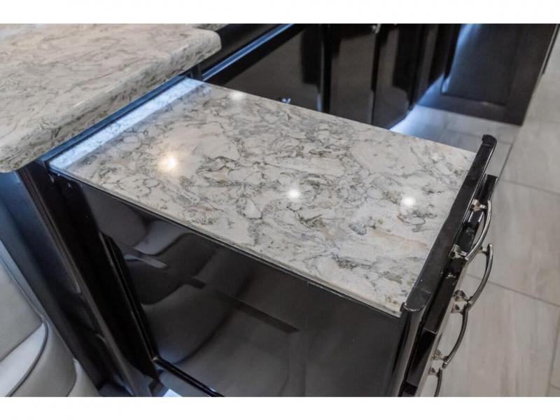 The 2024 Foretravel Realm FS6 is, not only, the premium luxury Motor-Coach on the market today, but the only coach in the industry built on Spartan's Premier K4 chassis offering incomparable ride, handling, and safety. This extraordinary motor coach is the Luxury Villa Master Suite (LVMS) floor plan featuring the incomparable Polished Stone and Cambridge interior décor package and is perfectly paired with the Armor exterior paint scheme with Diamond Pearl that you simply must see in person! The LVMS floorplan is unlike any luxury motor coach in the world; offering multiple living & dining arrangements highlighted by the dual power-adjustable dinette tables, an extra-long lounger, and a master suite arrangement that sets the LVMS apart from all other floor plans. You will find spacious wardrobes, a lavish custom-built vanity and chair, extra-large nightstands, convenient washer/dryer to closet accessibility, and exceptional storage throughout this one-of-a-kind floor plan. You will also find a multi-function digital dash and instrumentation display system, the Premier Steer adjustable driver's assist system, a Navigation system with in-dash and additional passenger side monitor, Total Coach Monitoring System, tire pressure sensors, beautiful tile floors and back-splashes, quartz counter tops throughout, ultra-high-end appliances, LED accent lighting throughout, a beautiful curved step entry way, Braun extra heavy duty power entrance step, a designer entry door with LED accent lighting, iPad launch system, 4K TVs where applicable, upgraded cab stereo and sub-woofer, heated and cooled pilot and co-pilot seats, recessed and upgraded ceiling features in the galley, recessed cook top, Mobile Eye Collision Avoidance System, a "Bird's Eye View" camera system for the ultimate in coach visibility along with an additional 3-camera coach monitoring system with power rear camera, dual integrated power awnings, power entry door awning, exterior entertainment center, (2) electric sliding cargo trays, exterior freezer, full coach and multi-color LED ground effect lighting package, Xtreme-Schemes full body paint exterior with Armor-Coat sprayed protection below windshield, all new chrome grill and accent package, (2) 2800 watt inverters, electric floor heat, (2) solar panels, dishwasher drawer, HD satellite and WiFi Ranger. The Realm FS6 rides exclusively on the all-new Spartan® K4 chassis. The K4 is not only massive in stature but boasts a best-in-class 20,000 lb. Independent Front Suspension, Premier Steer (adjustable steering control system), a Torqued-Box Frame, a passive steering rear tag axle for incomparable handling and maneuverability as well as the Spartan’s Advanced Protection System® which includes OnGuard Active™ a collision mitigation system with adaptive cruise control, Cummins Connected Diagnostics™, electronic stability control, and automatic traction control. You will know instantly, once behind the wheel of a Realm FS6, that this chassis is truly a cut above all other luxury motor coach chassis. It is powered by a Cummins X15 605HP diesel. You will also find additional advanced safety features on a Realm FS6 including a fire suppression system for the engine, Tyron Bead-Lock wheel safety bands, and steel construction rather than an aluminum cage found in the competition. You will also enjoy the ultimate in slide-out room fit and finish. These slides are undoubtedly head and shoulders above the competition. They feature pneumatic seals that provide a literal airtight seal completely around the entire slide-out room regardless of slide position for the premium in fit, finish, and function. They also feature a power drop-down flooring system that gives the Realm not only a flat-floor when extended, but a true flat floor when retracted as well. (No carpet lips, uneven floor surfaces, damaging rollers, poorly sealed rubber gaskets, etc.) The Realm also features a flat floor bedroom to master bath transition.