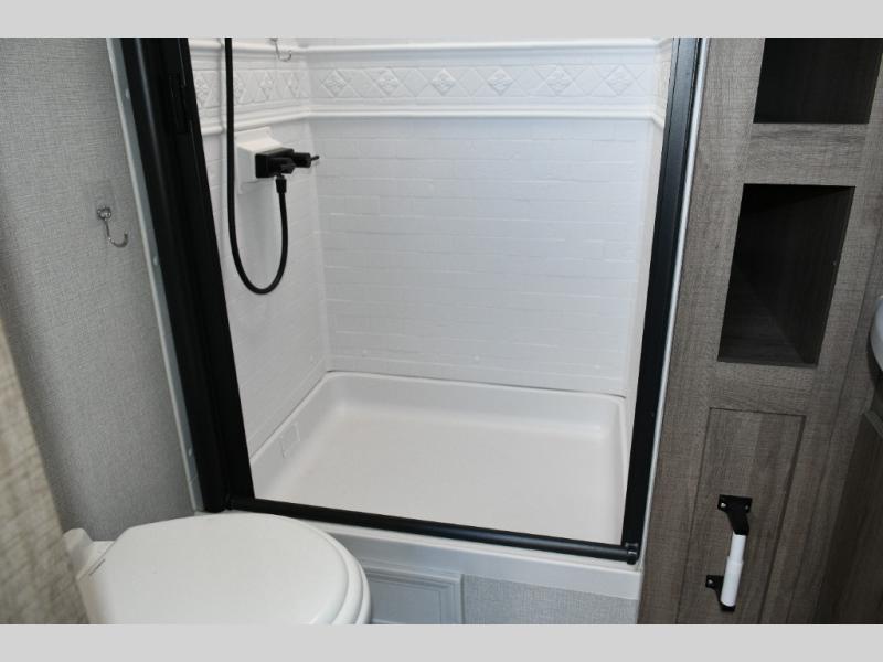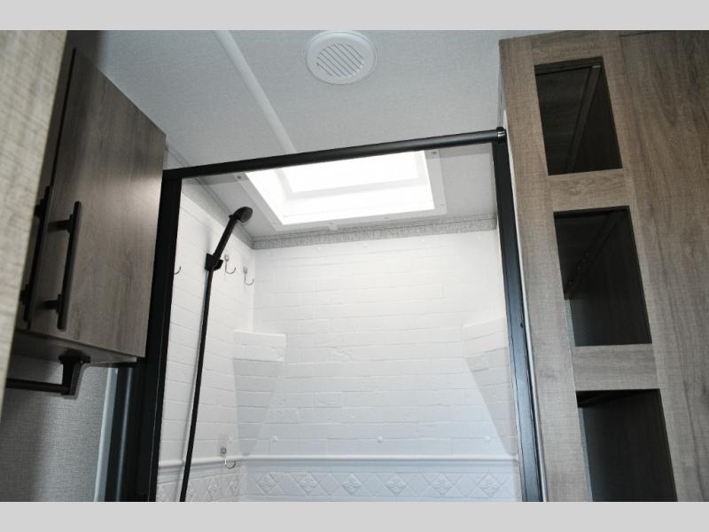 Enjoy maximum storage with the exclusive drop-frame pass-through compartment, perfect for your camping gear. The universal docking station keeps all your hookups in one convenient place, while the trailer’s industry-leading tank capacities let you camp longer between stops.