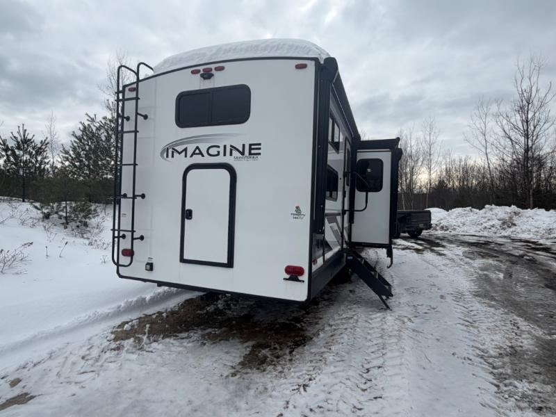Just imagine leaving the world behind and secluding yourself away with your favorite people in your Grand Design Imagine travel trailer! The Imagine has been designed to enjoy extended season camping and includes a high-capacity furnace, a heated and enclosed underbelly with suspended tanks, a designated heat duct to the subfloor, and a high-density roof insulation with attic vent. You'll have maximum head room on the interior with 81" radius ceilings, and large panoramic windows to let in natural lighting. The exclusive drop-frame pass-through storage compartment is going to allow you to bring along lots of equipment, and the universal docking station is an all-in-one location for utilities and hook-ups. You'll also have industry-leading tank capacities so that you can fill and empty your tanks less often.