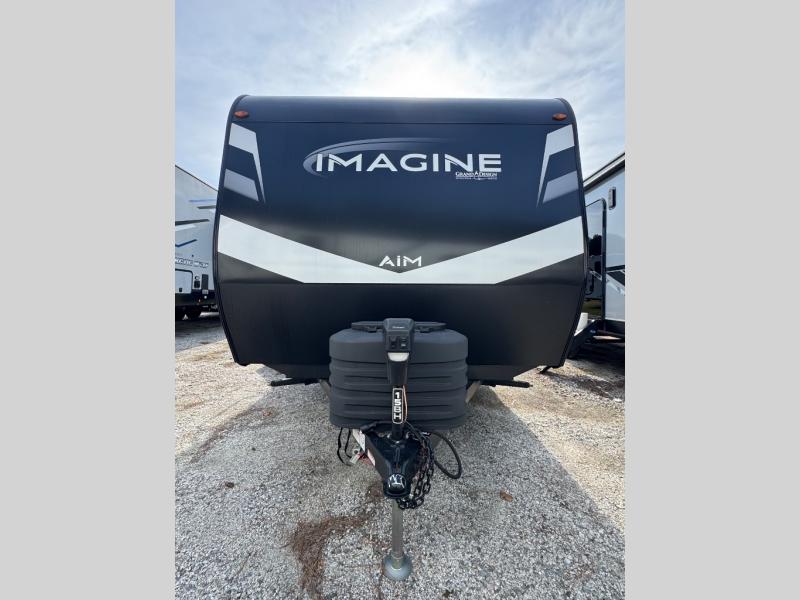 Aim for new destinations in one of these Grand Design Imagine AIM travel trailers! They are constructed to a superior standard with the 4-Seasons Protection Package that features a heated and enclosed underbelly with suspended tanks, a moisture barrier floor enclosure, a double insulated roof and front wall, and more. There is backup camera prep outside, along with a universal docking station, a power tongue jack, and durable Tuff-Ply pass-thru flooring for your camp gear. You are sure to feel at home with residential cabinetry, premium window treatments, residential countertops, and a spacious walk-in shower to name a few comforts. The on-demand tankless water heater is a feature you won't want to camp without and the hi-definition LED TV will ensure you'll never go bored on rainy days. Each model also comes with four AIM packages; the Peace of Mind Package, The Ultimate Power Package, The 4-Season Protection Package, and the Solar Package!