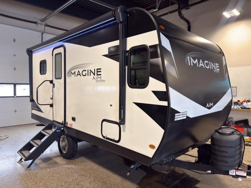 Aim for new destinations in one of these Grand Design Imagine AIM travel trailers! They are constructed to a superior standard with the 4-Seasons Protection Package that features a heated and enclosed underbelly with suspended tanks, a moisture barrier floor enclosure, a double insulated roof and front wall, and more. There is backup camera prep outside, along with a universal docking station, a power tongue jack, and durable Tuff-Ply pass-thru flooring for your camp gear. You are sure to feel at home with residential cabinetry, premium window treatments, residential countertops, and a spacious walk-in shower to name a few comforts. The on-demand tankless water heater is a feature you won't want to camp without and the hi-definition LED TV will ensure you'll never go bored on rainy days. Each model also comes with four AIM packages; the Peace of Mind Package, The Ultimate Power Package, The 4-Season Protection Package, and the Solar Package!