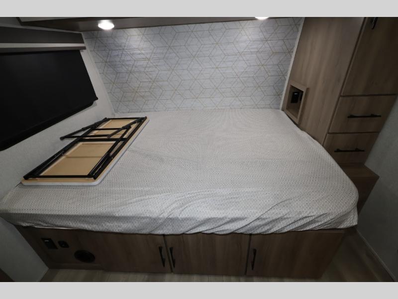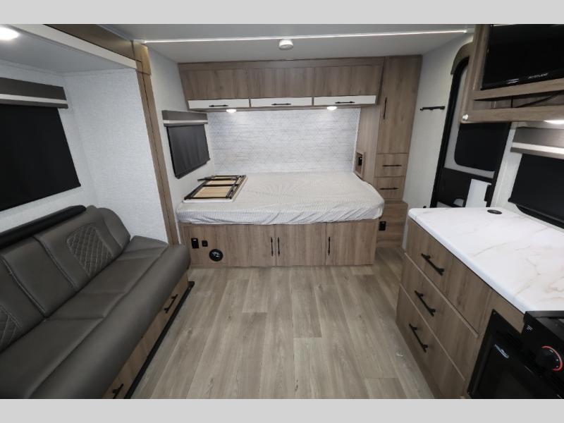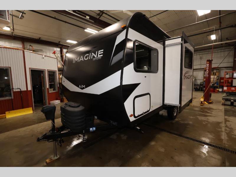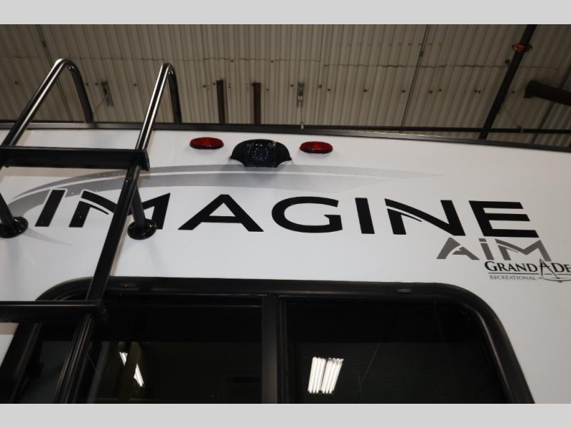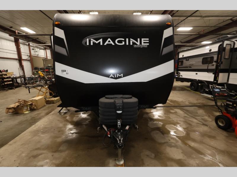 Aim for new destinations in one of these Grand Design Imagine AIM travel trailers! They are constructed to a superior standard with the 4-Seasons Protection Package that features a heated and enclosed underbelly with suspended tanks, a moisture barrier floor enclosure, a double insulated roof and front wall, and more. There is backup camera prep outside, along with a universal docking station, a power tongue jack, and durable Tuff-Ply pass-thru flooring for your camp gear. You are sure to feel at home with residential cabinetry, premium window treatments, residential countertops, and a spacious walk-in shower to name a few comforts. The on-demand tankless water heater is a feature you won't want to camp without and the hi-definition LED TV will ensure you'll never go bored on rainy days. Each model also comes with four AIM packages; the Peace of Mind Package, The Ultimate Power Package, The 4-Season Protection Package, and the Solar Package!