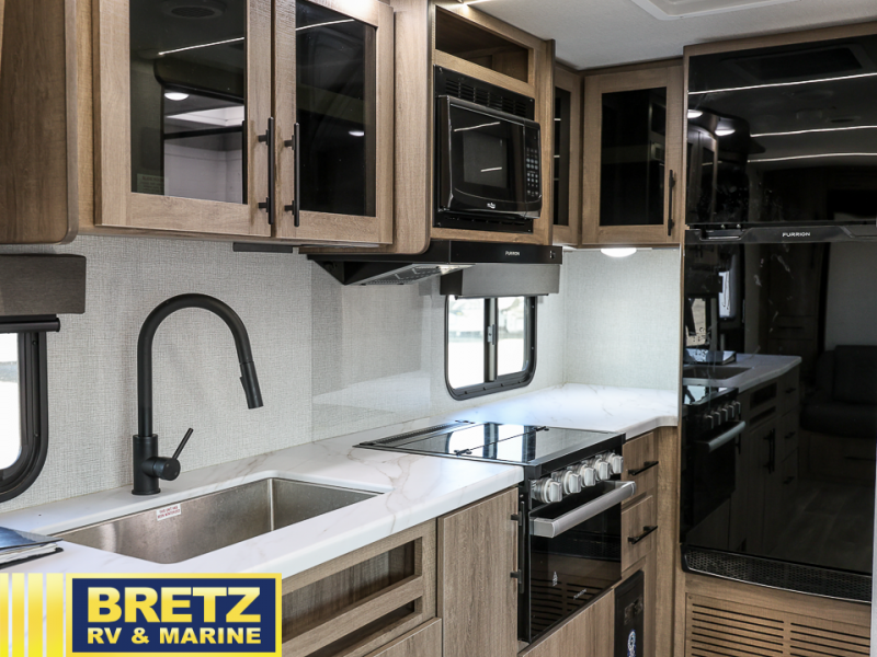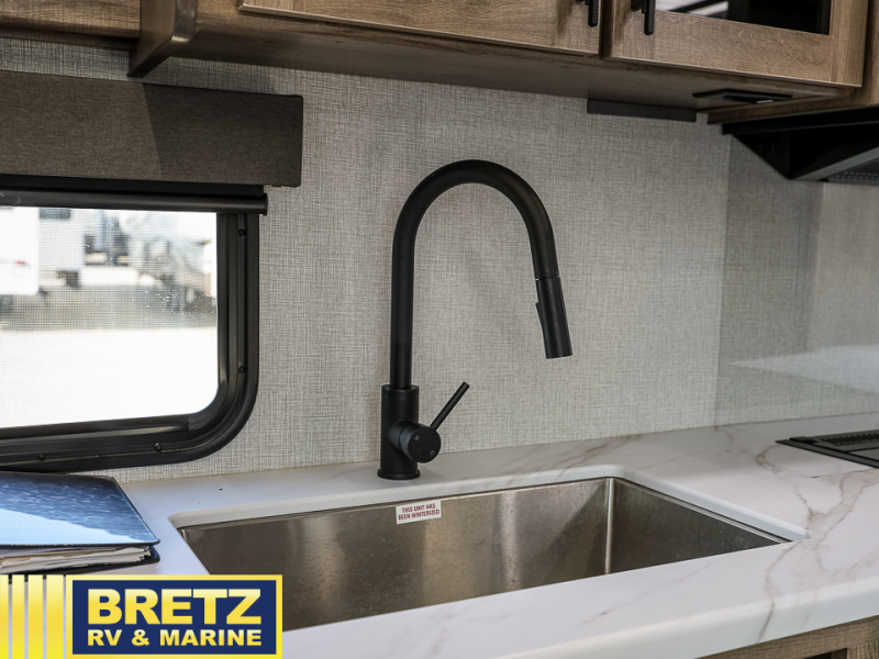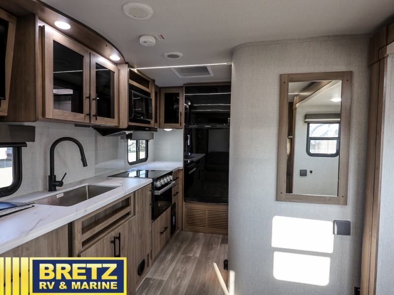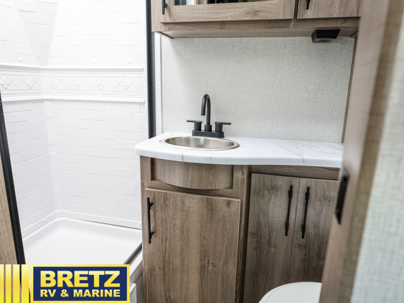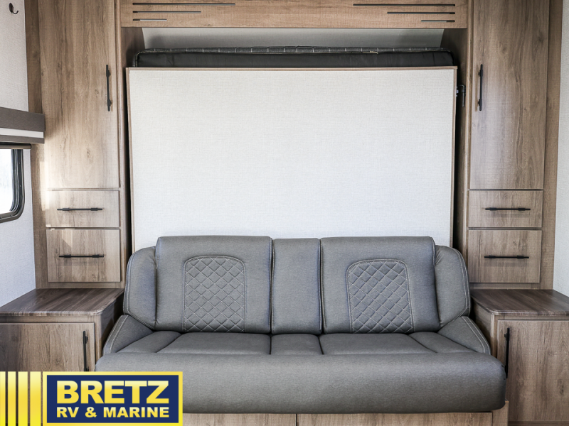 The Murphy bed is the eye-catching feature on this Imagine XLS travel trailer! Not only can it fold away in the morning to reveal a sofa for lounging, but it will also provide you with drawer storage under the sofa. Another functional feature is the theater dinette with a removable table in front or you can choose the optional U-shaped dinette if you like to gather around for game night. It rests on the single slide so that there is more floor space, and it offers you great comfort while you dine across from the LED HDTV. A full bathroom will keep you clean and fresh with its residential walk-in shower, skylight, linen closet, vanity, toilet, and power vent fan.