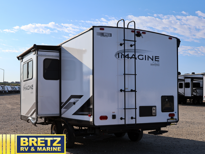 Let your imagination run wild with the possibilities that the Grand Design Imagine XLS travel trailer can provide! The Imagine XLS has been built with oversized tank capacities, an extra-large 2" fresh water drain valve, a ducted A/C system, a power tongue jack, and a heated and enclosed underbelly with suspended tanks. There is a designated heat duct to the subfloor and a residential ductless heating system throughout. For outdoor adventures, the electric awning with LED lights will enable you to stay protected, and the Tuff-Ply pass-thru flooring will withstand your many adventures. You will also love the XLS Solar Package that comes with a 180W roof mounted solar panel, a 40 Amp charge controller, a 12V 10 cu. ft. refrigerator, and roof mounted quick connect plugs!