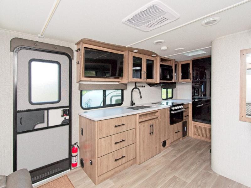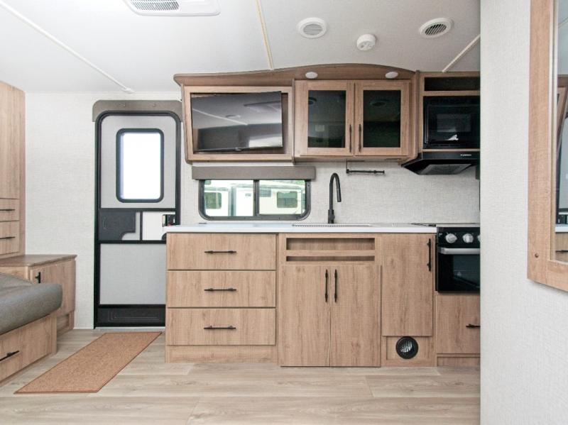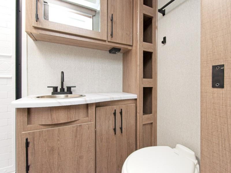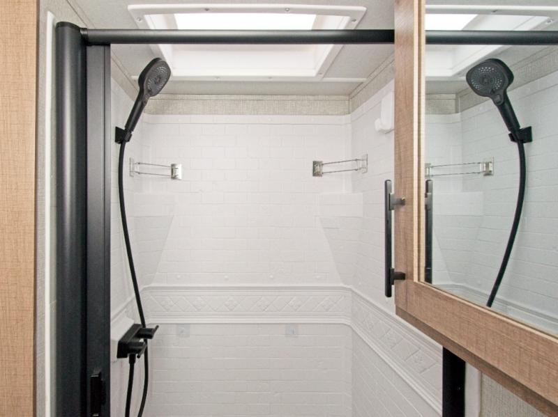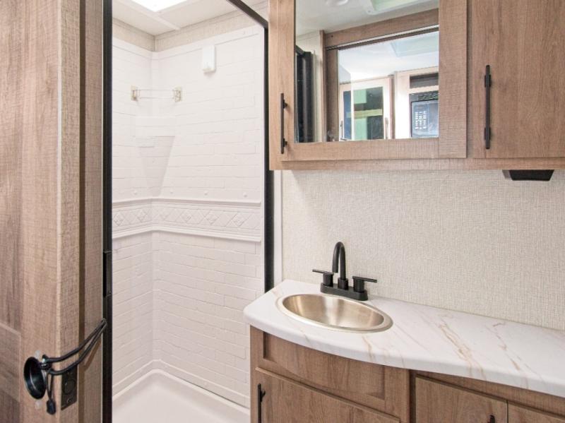 A single slide-out expands your living space, while the LED HDTV ensures entertainment is always within view. The full rear bathroom features a residential walk-in shower, skylight, linen closet, vanity, and power vent fan—everything you need to stay refreshed on the road.