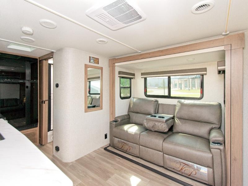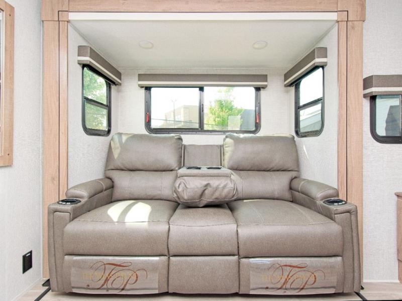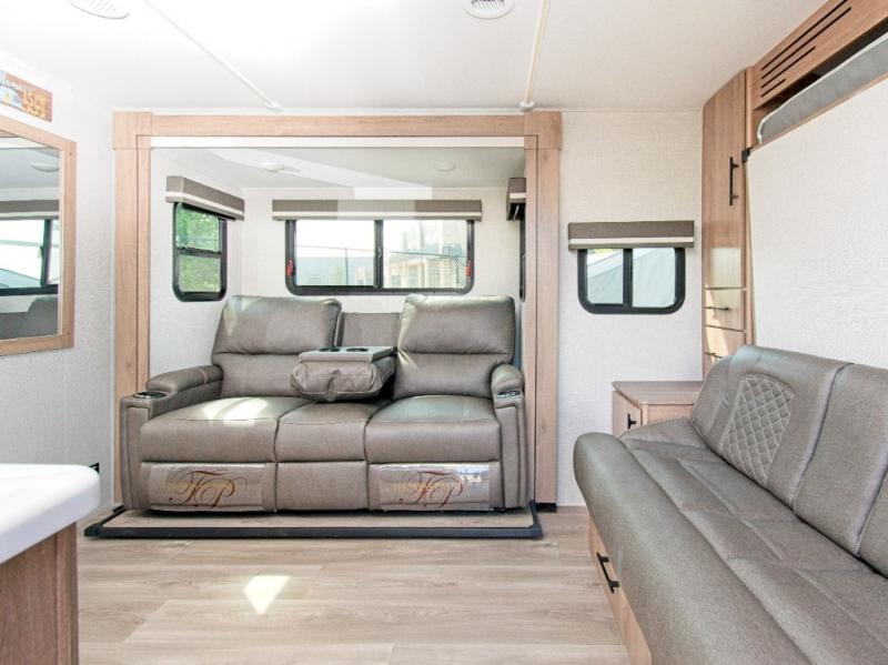 Plus, the electric awning with LED lighting and Tuff-Ply pass-through flooring make outdoor living just as enjoyable as the interior.
