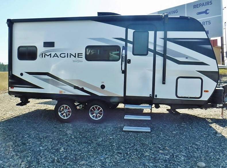Let your imagination run wild with the possibilities that the Grand Design Imagine XLS travel trailer can provide! The Imagine XLS has been built with oversized tank capacities, an extra-large 2" fresh water drain valve, a ducted A/C system, a power tongue jack, and a heated and enclosed underbelly with suspended tanks. There is a designated heat duct to the subfloor and a residential ductless heating system throughout. For outdoor adventures, the electric awning with LED lights will enable you to stay protected, and the Tuff-Ply pass-thru flooring will withstand your many adventures. You will also love the XLS Solar Package that comes with a 180W roof mounted solar panel, a 40 Amp charge controller, a 12V 10 cu. ft. refrigerator, and roof mounted quick connect plugs!