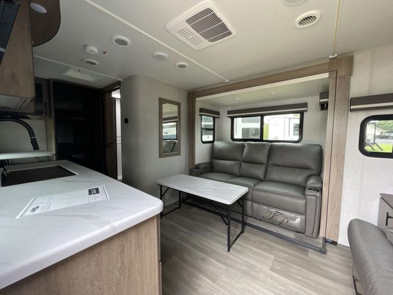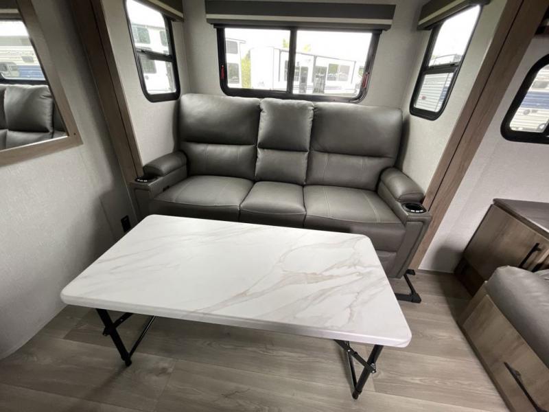 Let your imagination run wild with the possibilities that the Grand Design Imagine XLS travel trailer can provide! The Imagine XLS has been built with oversized tank capacities, an extra-large 2" fresh water drain valve, a ducted A/C system, a power tongue jack, and a heated and enclosed underbelly with suspended tanks. There is a designated heat duct to the subfloor and a residential ductless heating system throughout. For outdoor adventures, the electric awning with LED lights will enable you to stay protected, and the Tuff-Ply pass-thru flooring will withstand your many adventures. You will also love the XLS Solar Package that comes with a 180W roof mounted solar panel, a 40 Amp charge controller, a 12V 10 cu. ft. refrigerator, and roof mounted quick connect plugs!