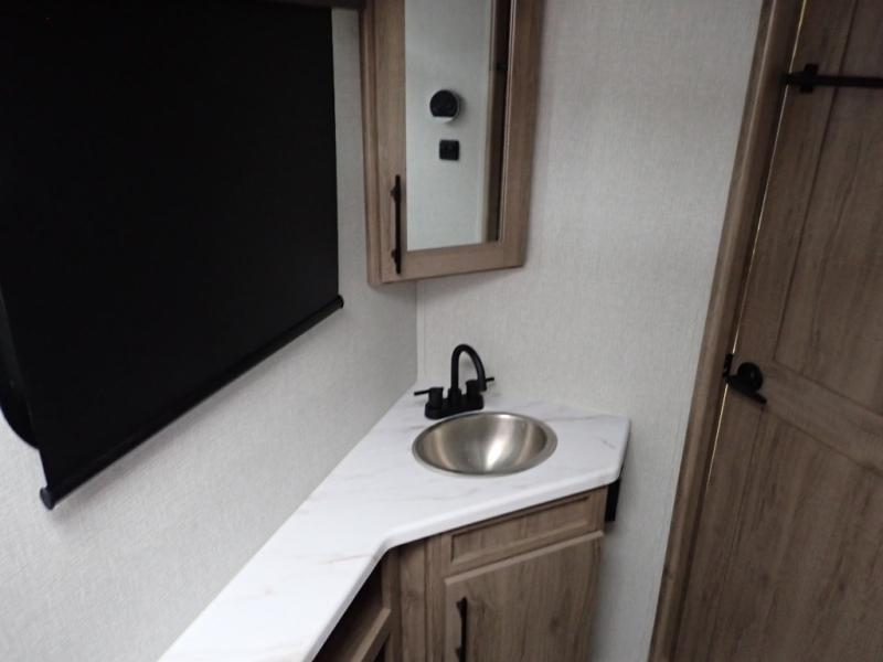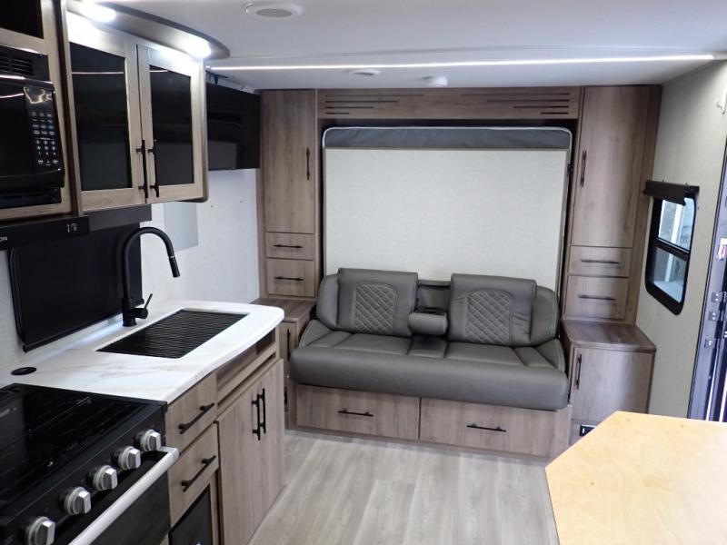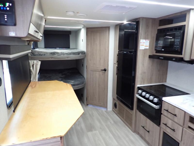 Can you think of anything better than a weekend in this Imagine XLS travel trailer! You will never miss home when you see all of the amenities included on this trailer. There is a full bathroom for easy morning routines, a set of double-size bunks with privacy curtains for compact sleeping, shoe storage under the booth dinette, and a full kitchen with all of the appliances needed for filling meals. There is also a privacy curtain in the front that sections off the queen Murphy bed. In addition to all of that, you'll also find an outdoor griddle that you can use when the weather is nice. The unobstructed pass-through storage will be able to store your fishing poles and sports equipment while you travel.