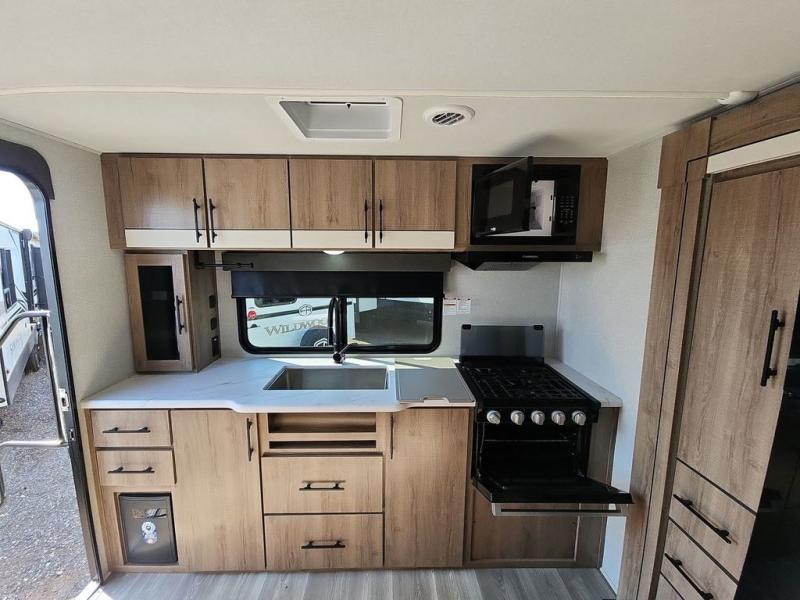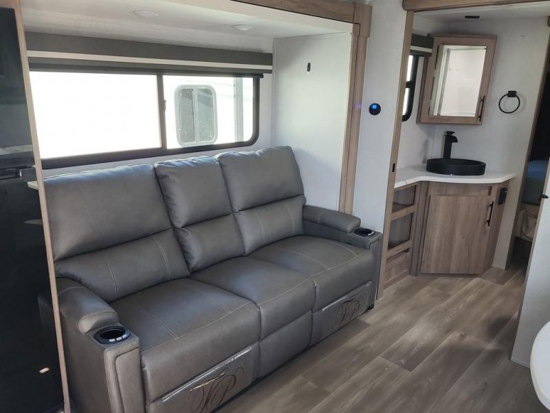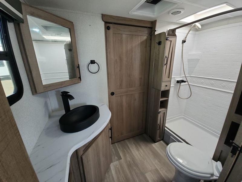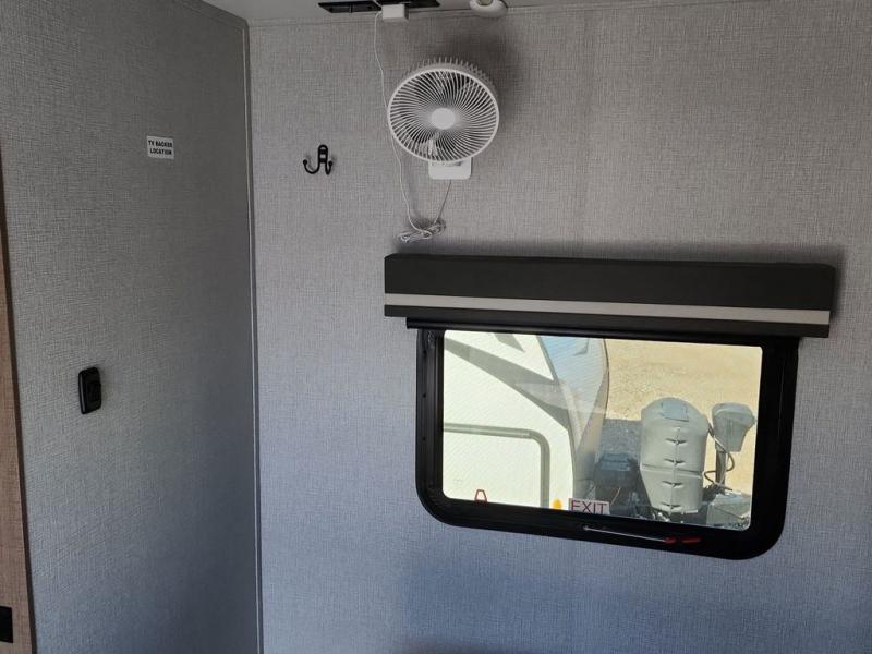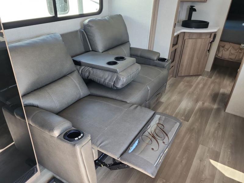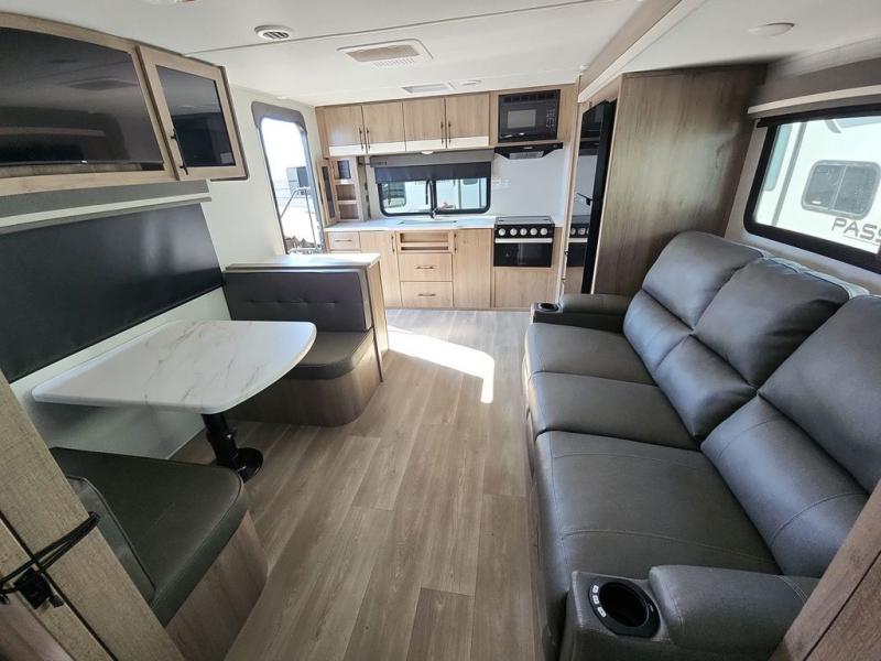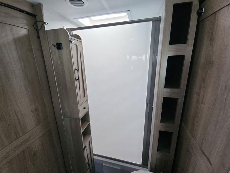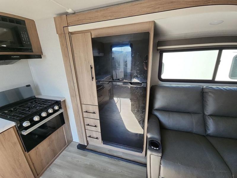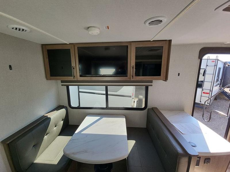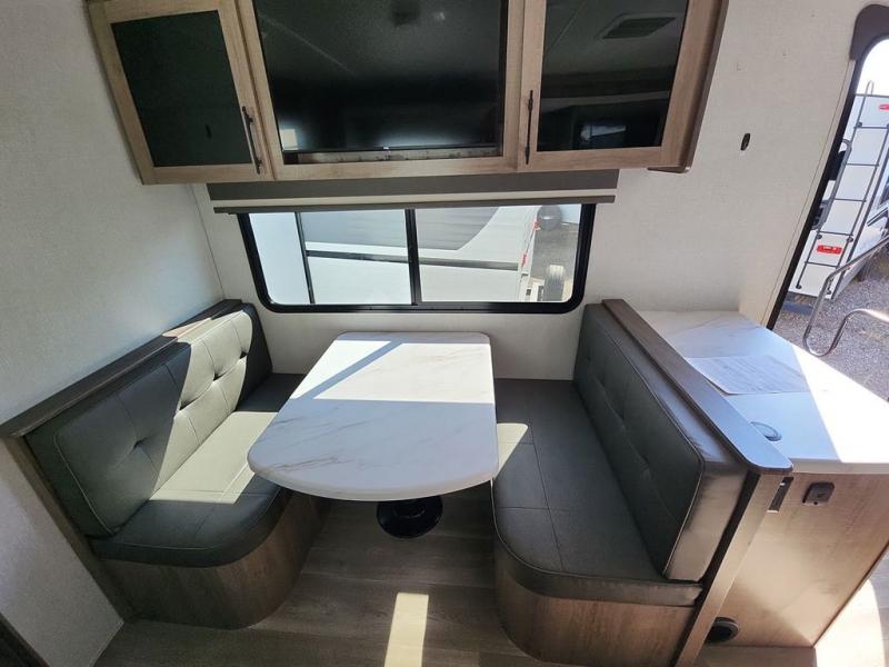 Treat yourself to a weekend of fun in this Imagine XLS travel trailer! Whether it's just you and your spouse, or you've chosen to bring along a group of friends, this trailer will meet the need. The front bedroom can sleep two people on the walk-around queen-size bed. The bedroom is quite functional because it not only contains the second exterior entry door, but it also has a private entrance into the walk-through bathroom since it is located on the other side of the bathroom. The booth dinette is functional too because it can transform from a dining location into a sleeping location, and the theater seating is directly across from the LED TV for easy viewing.