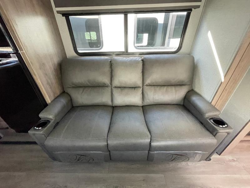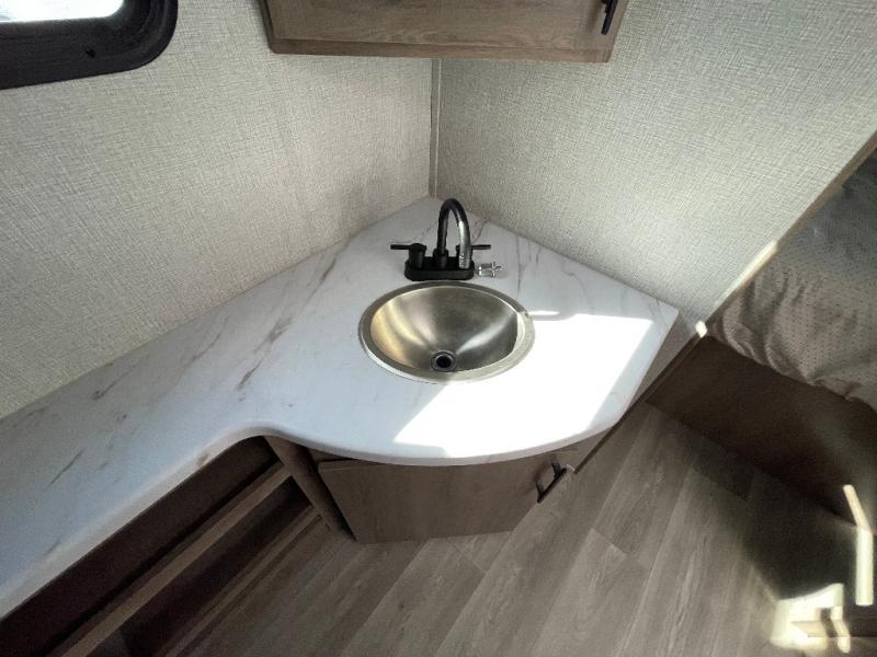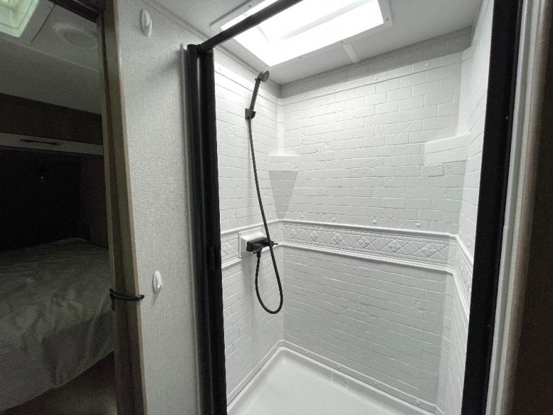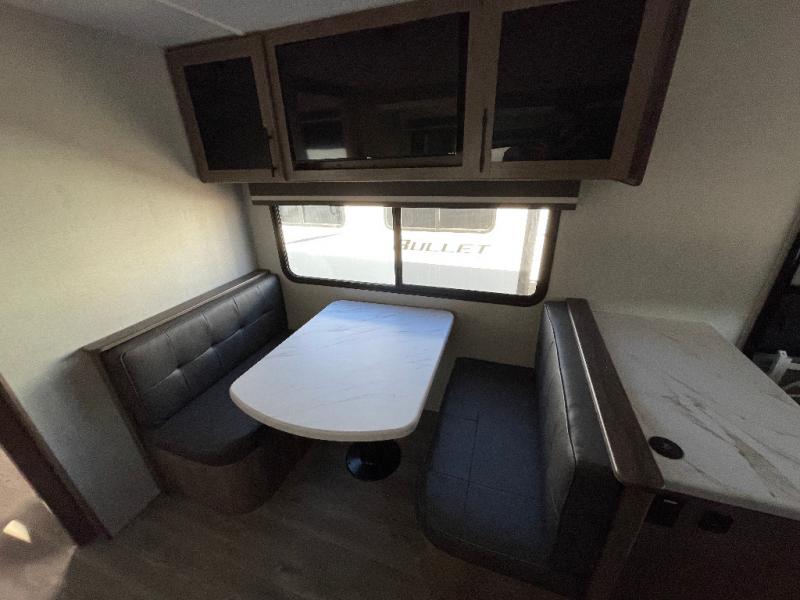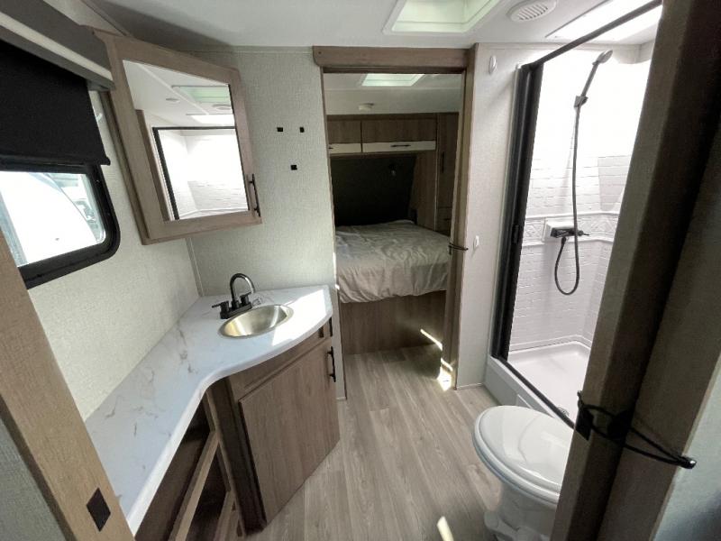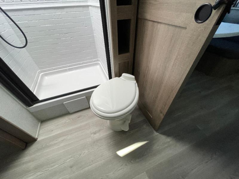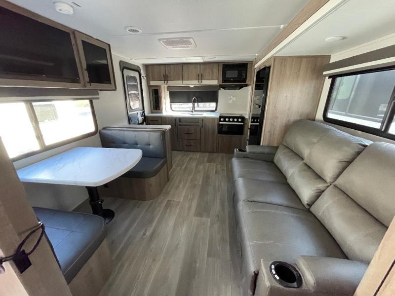 Treat yourself to a weekend of fun in this Imagine XLS travel trailer! Whether it's just you and your spouse, or you've chosen to bring along a group of friends, this trailer will meet the need. The front bedroom can sleep two people on the walk-around queen-size bed. The bedroom is quite functional because it not only contains the second exterior entry door, but it also has a private entrance into the walk-through bathroom since it is located on the other side of the bathroom. The booth dinette is functional too because it can transform from a dining location into a sleeping location, and the theater seating is directly across from the LED TV for easy viewing.