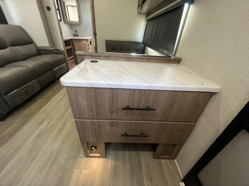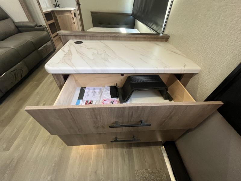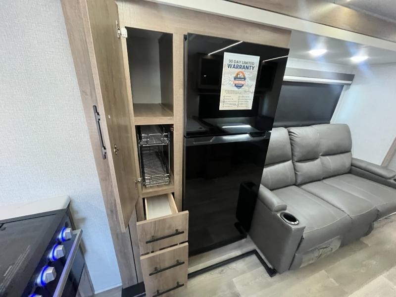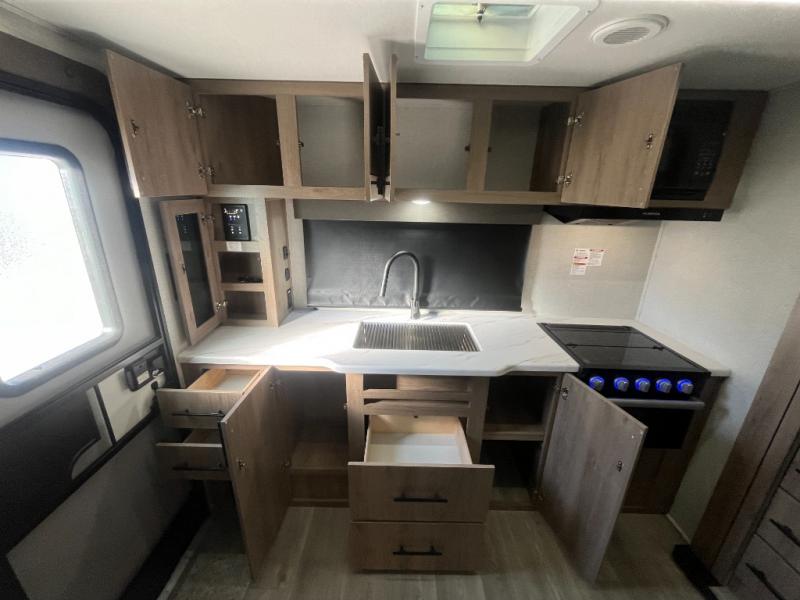 Let your imagination run wild with the possibilities that the Grand Design Imagine XLS travel trailer can provide! The Imagine XLS has been built with oversized tank capacities, an extra-large 2" fresh water drain valve, a ducted A/C system, a power tongue jack, and a heated and enclosed underbelly with suspended tanks. There is a designated heat duct to the subfloor and a residential ductless heating system throughout. For outdoor adventures, the electric awning with LED lights will enable you to stay protected, and the Tuff-Ply pass-thru flooring will withstand your many adventures. You will also love the XLS Solar Package that comes with a 180W roof mounted solar panel, a 40 Amp charge controller, a 12V 10 cu. ft. refrigerator, and roof mounted quick connect plugs!