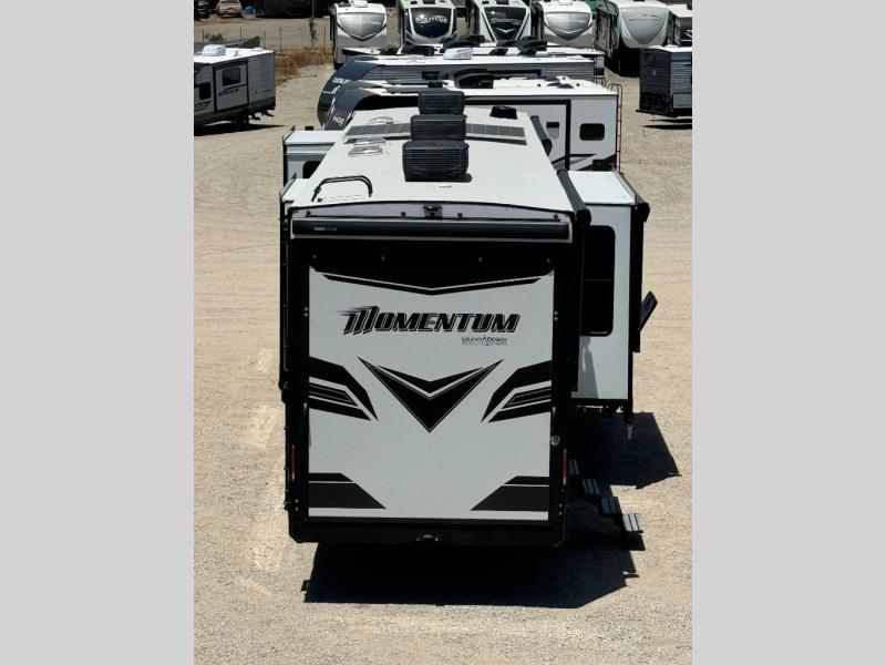 The Momentum fifth wheel toy haulers by Grand Design are built for four seasons of travel with your off-road toys and include luxurious accommodations throughout for extreme living! Each is constructed to a superior standard with the thermal roof design, the full-laminated walls, and the triple insulated garage floor. The MORryde CRE3000 suspension system and rubber pin box, plus the upgraded axle hangers provide the performance and smooth towing you desire, while the interior offers luxury such as color changing LED accent lighting, raised panel hardwood cabinet doors with hidden hinges, and a central vacuum system. Each toy hauler also includes four packages, including the Garage Package with Tuff-Ply gas and oil resistant flooring, the Weather-Tek Package with a Stealth AC System, and the Interior Luxury Package with solid surface countertops!