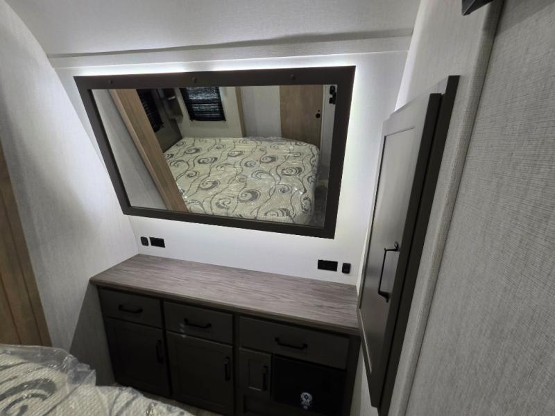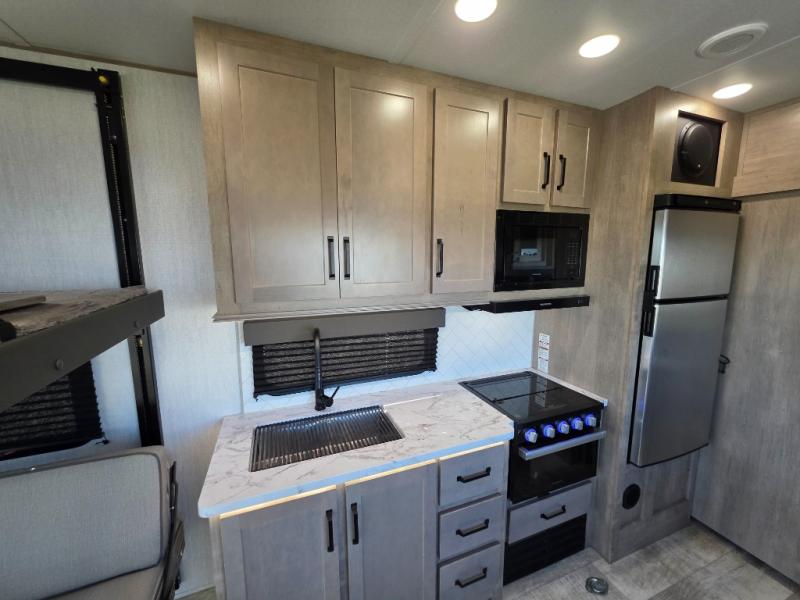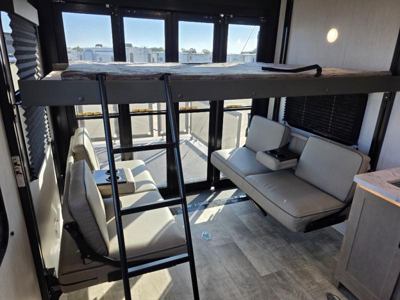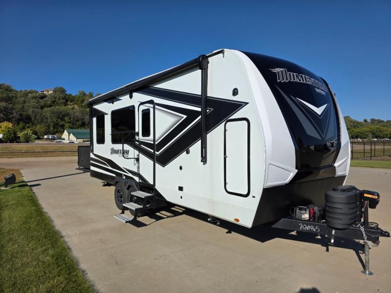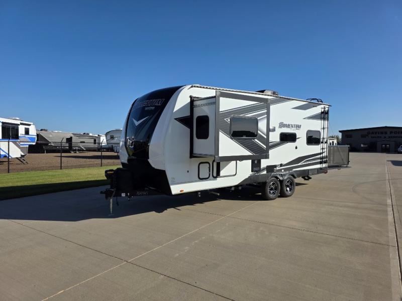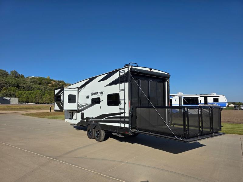 Are you looking for adventure and fun? The Momentum G-Class toy hauler by Grand Design will help you find it! You can explore during any season you choose with the Insulation Package that includes a heated and enclosed underbelly with suspended tanks, a high-capacity furnace, a moisture barrier floor enclosure, and cabinet-mounted heat ducts. Each model includes a fuel station with an interior and exterior gauge, a dovetail rear rend, and 2,500-LB tie-downs anchored into the chassis. Throughout the Momentum G-Class interior, you'll enjoy many comfortable features like large panoramic windows, a shower skylight, USB chargers in the bedroom, and residential cabinetry.