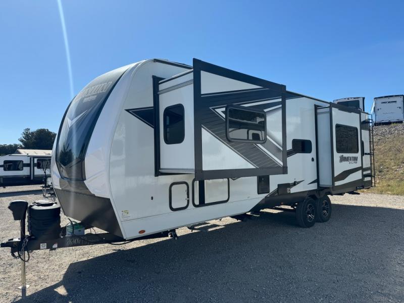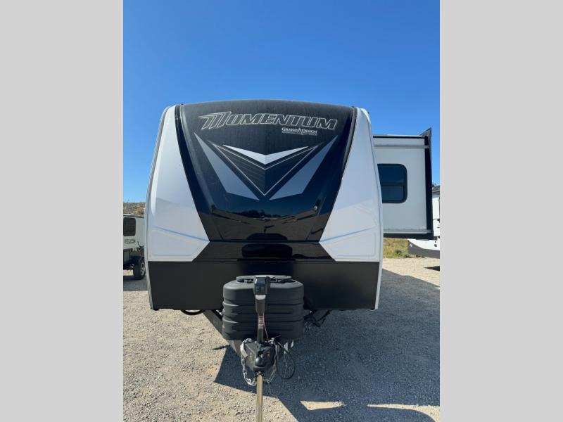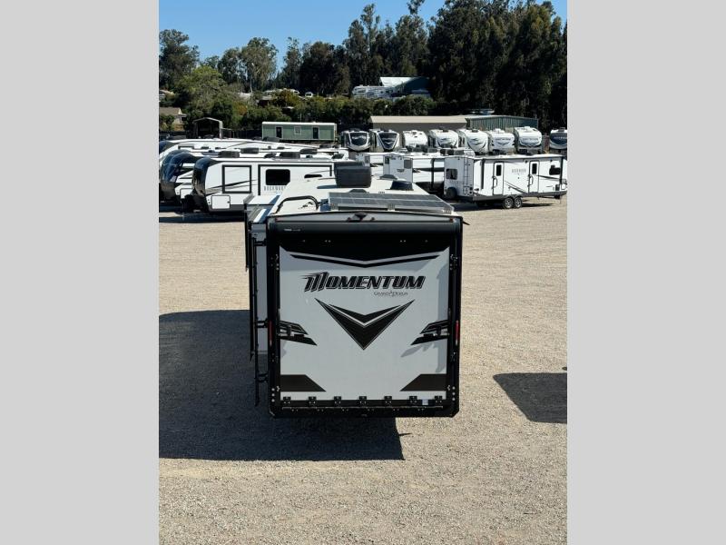 Are you looking for adventure and fun? The Momentum G-Class toy hauler by Grand Design will help you find it! You can explore during any season you choose with the Insulation Package that includes a heated and enclosed underbelly with suspended tanks, a high-capacity furnace, a moisture barrier floor enclosure, and cabinet-mounted heat ducts. Each model includes a 30-gallon fuel station with an interior and exterior gauge, a dovetail rear rend, and 2,500-LB tie-downs anchored into the chassis. Throughout the Momentum G-Class interior, you'll enjoy many comfortable features like large panoramic windows, a shower skylight, USB chargers in the bedroom, and residential cabinetry.