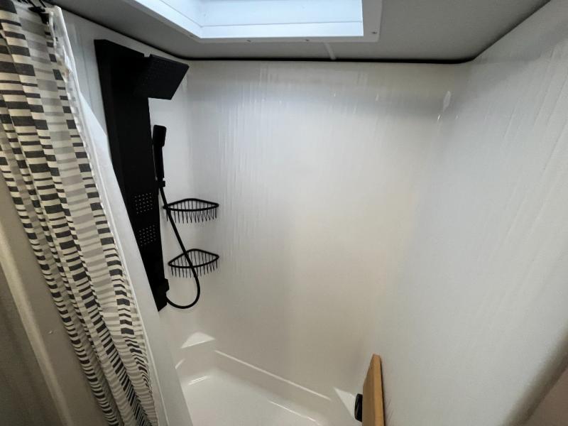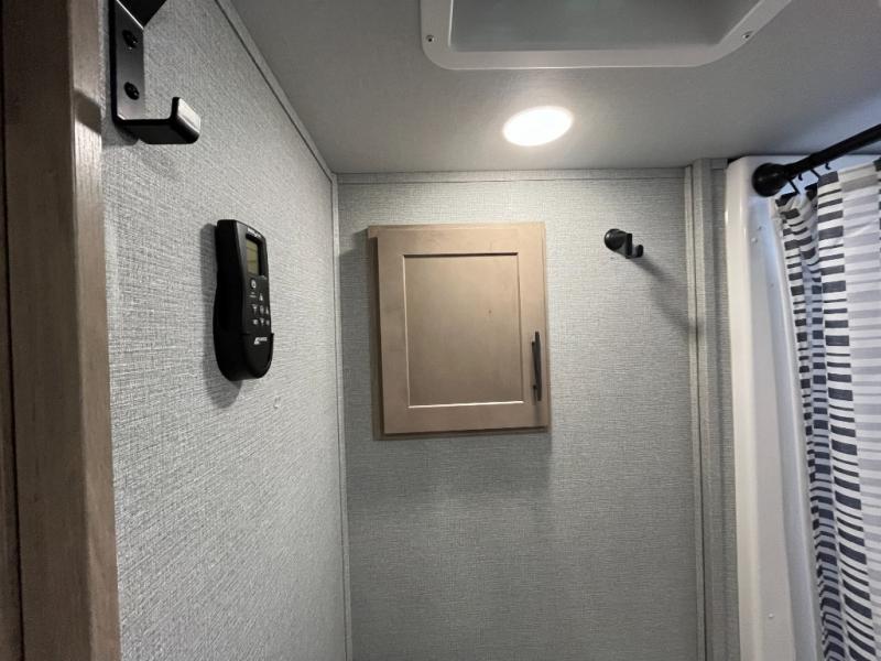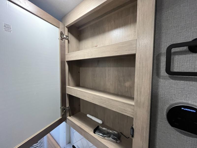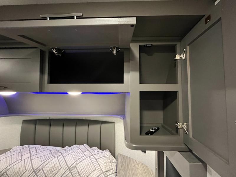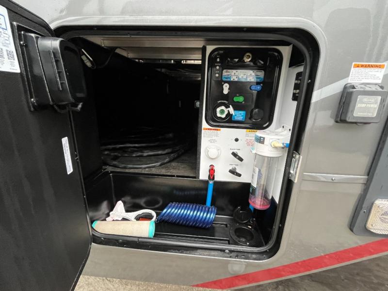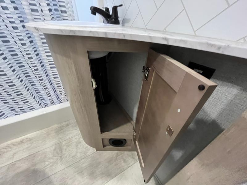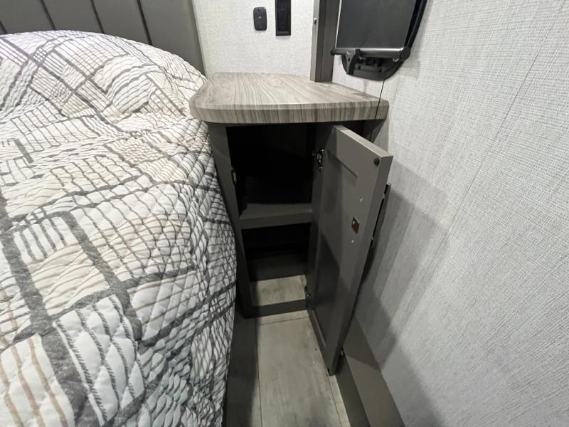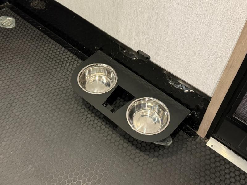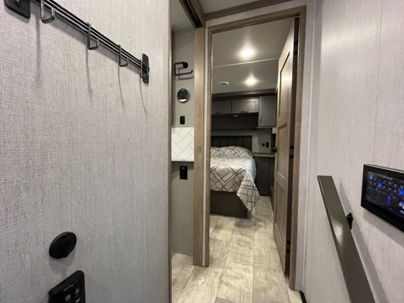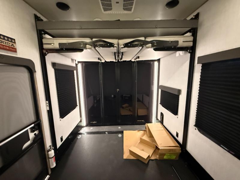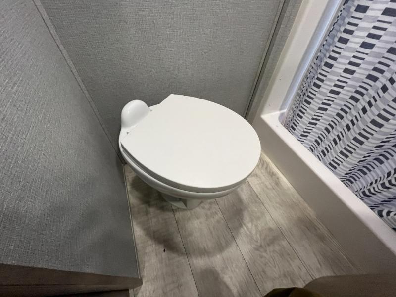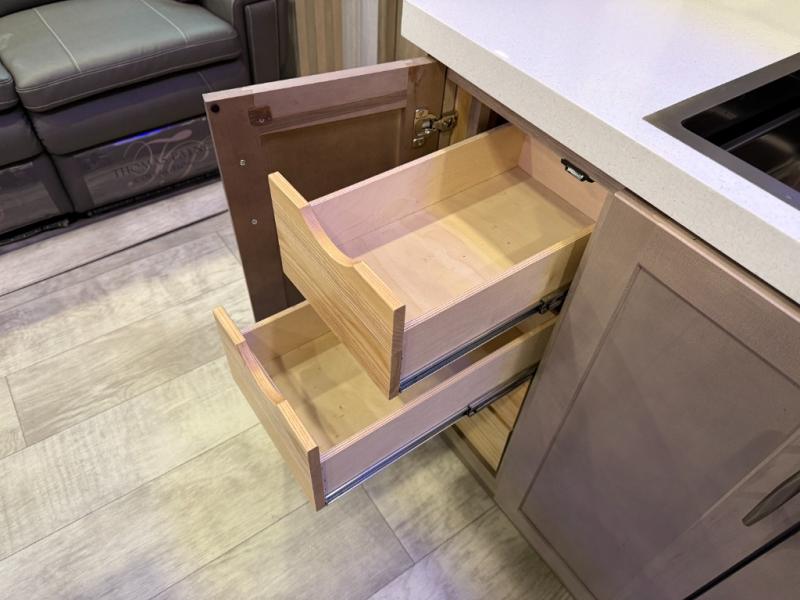 Load up your toys, gear, clothes and food to enjoy some off-road fun with your toys and friends! Once at the RV park, unload your toys and set up the three slide outs, the two awnings, and begin planning your trail rides! You might decide to make a meal or snack in the combined kitchen and main living area which offers all the appliances you need, plus a kitchen island with two bar stools, a pantry, an LED TV with a fireplace below, plus a slide out four-seat sofa. The garage even offers the option to add Happi-Jac rollover sofas and a table with a top bed if you want seating and sleeping space, plus there is storage, washer/dryer prep, and an optional half bath. The overhead loft bed provides sleeping space as well. You will love the sunken tub/shower with a seat in the full bathroom with a space savings sliding door, and the front bedroom can be your escape. There is a queen bed, a slide out wardrobe and USB charging outlets.