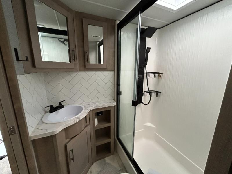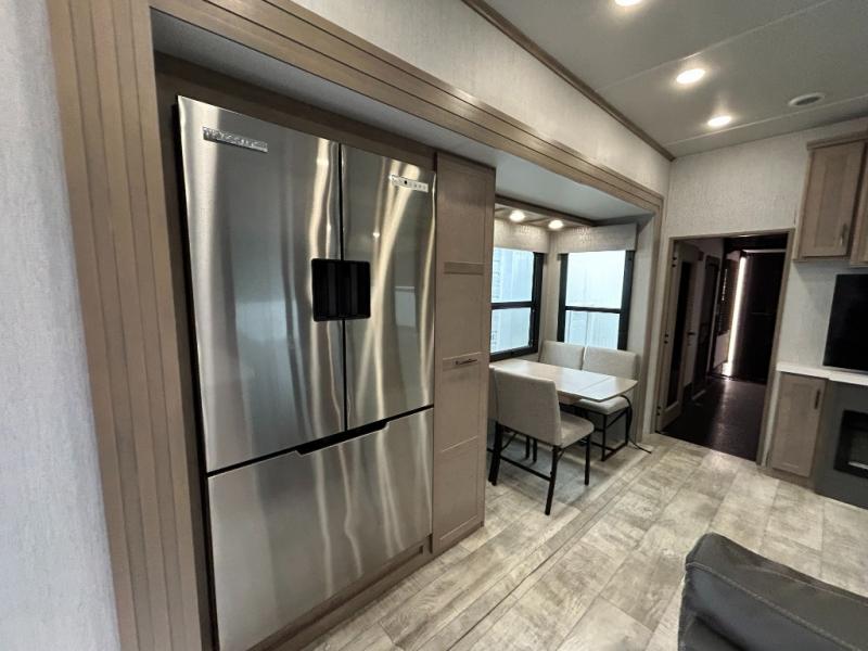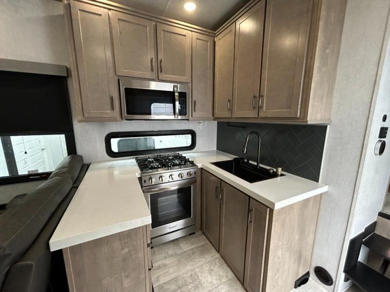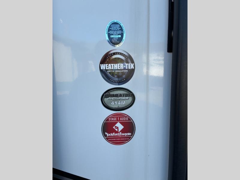 With any Momentum M-Class toy hauler by Grand Design, you will enjoy luxury at every turn! They have been constructed to a superior standard with a thermal roof design, triple insulated main floor and garage floor, and a Rail-Tite underbelly seal that will allow you to camp in all elements. Each model also features a, 8' 5" wide body chassis with a wide rail design, no wheel wheels, and a dovetail entry for easier loading. The Stealth A/C system provides maximum cooling power, and the CRE3000 suspension system means you can enjoy a smooth tow each time. You will love the luxurious interior with a professional grade stainless steel cooktop, interior color changing LED accent lighting, a fiberglass shower with a glass door, and solid surface countertops.