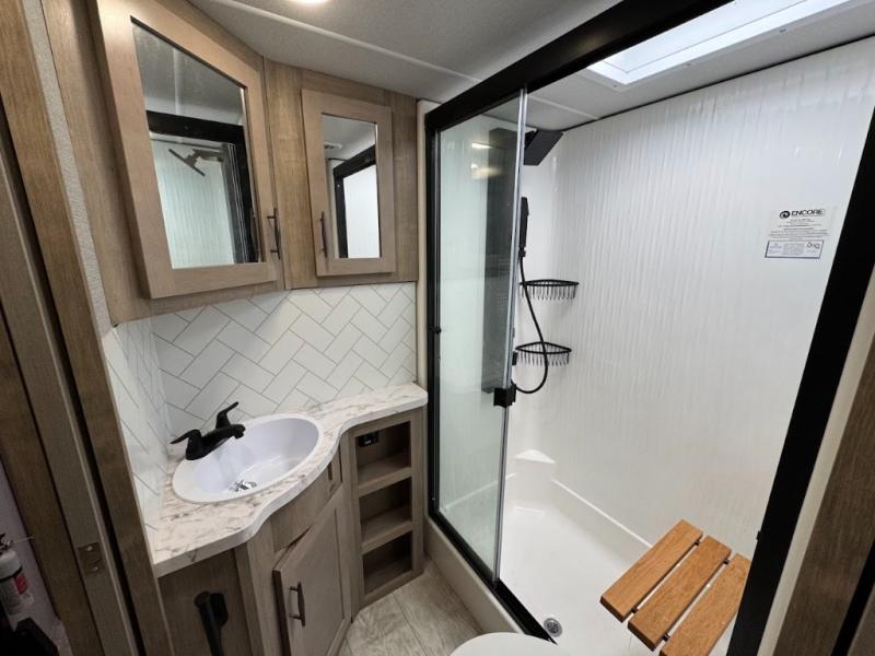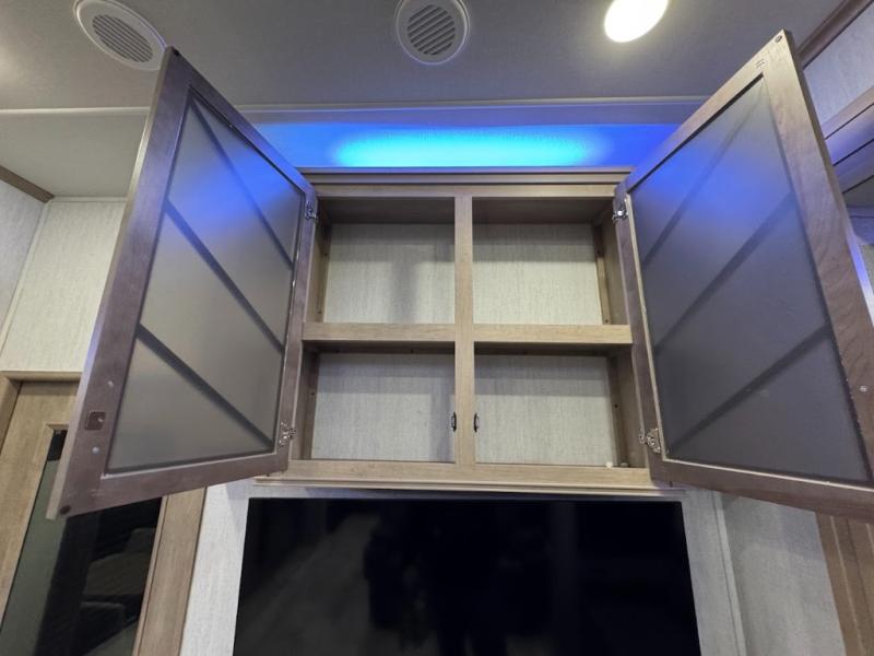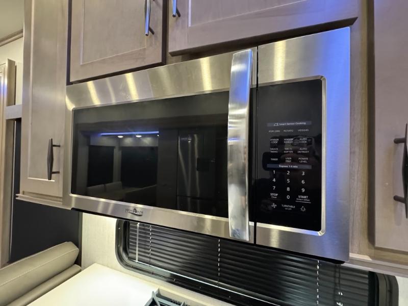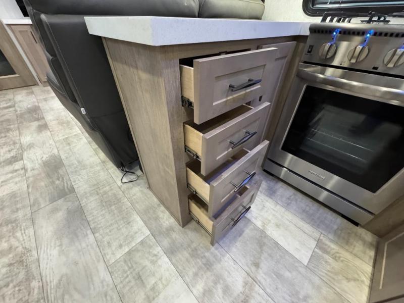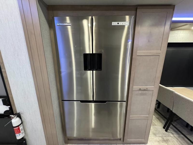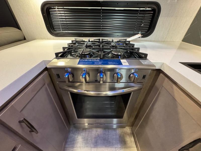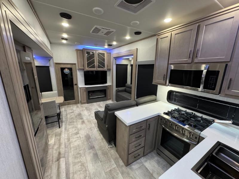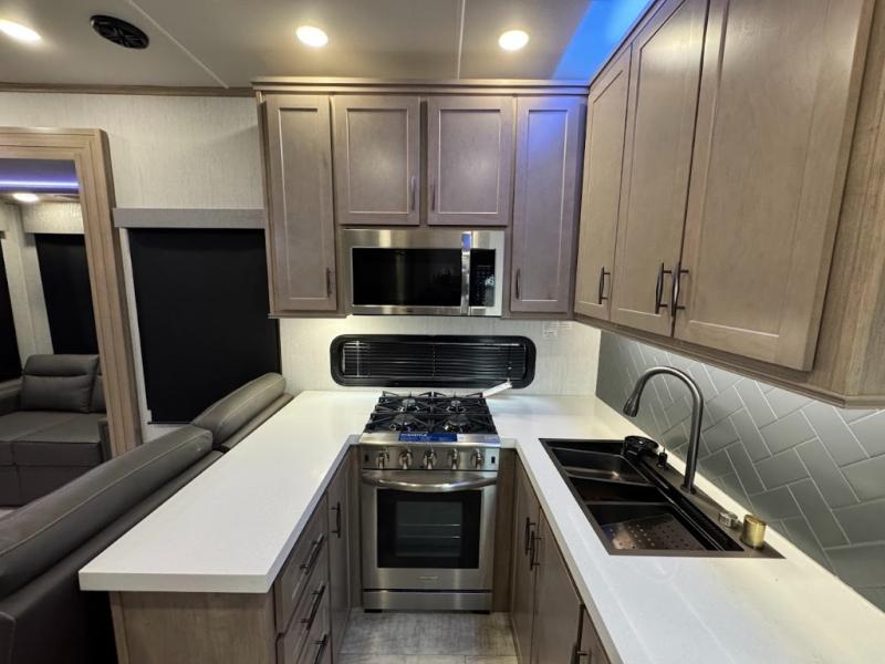 With any Momentum M-Class toy hauler by Grand Design, you will enjoy luxury at every turn! They have been constructed to a superior standard with a thermal roof design, triple insulated main floor and garage floor, and a Rail-Tite underbelly seal that will allow you to camp in all elements. Each model also features a, 8' 5" wide body chassis with a wide rail design, no wheel wheels, and a dovetail entry for easier loading. The Stealth A/C system provides maximum cooling power, and the CRE3000 suspension system means you can enjoy a smooth tow each time. You will love the luxurious interior with a professional grade stainless steel cooktop, interior color changing LED accent lighting, a fiberglass shower with a glass door, and solid surface countertops.