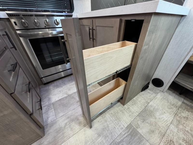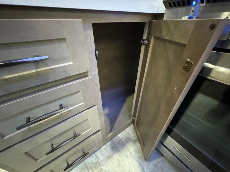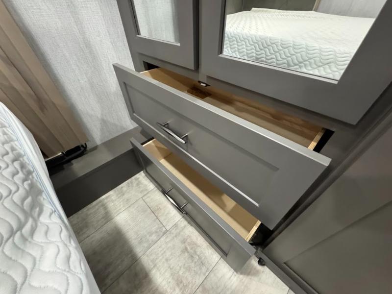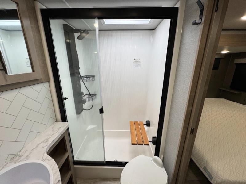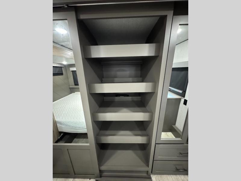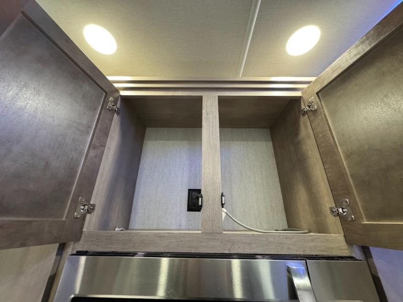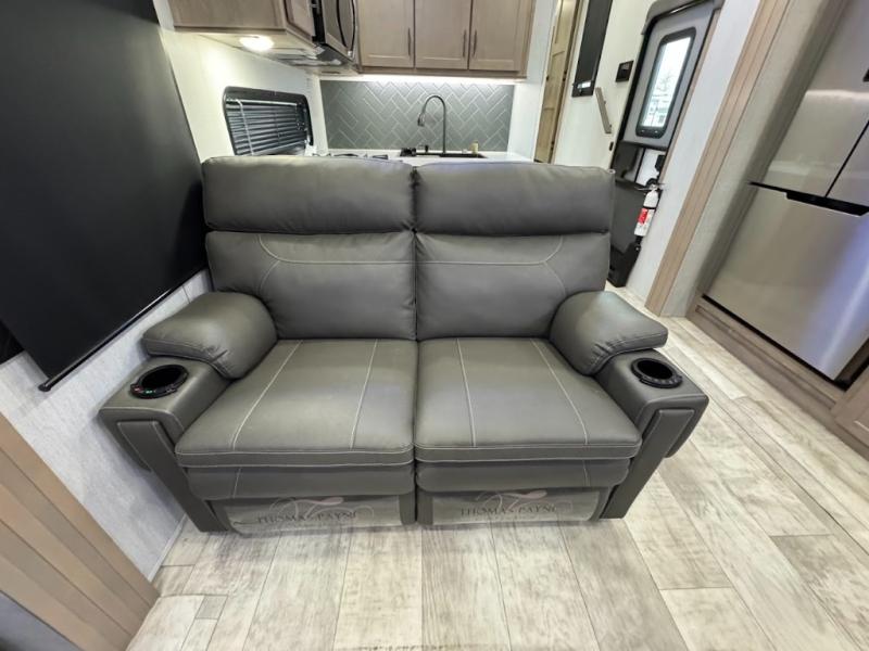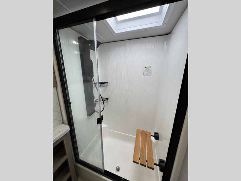 With any Momentum M-Class toy hauler by Grand Design, you will enjoy luxury at every turn! They have been constructed to a superior standard with a thermal roof design, triple insulated main floor and garage floor, and a Rail-Tite underbelly seal that will allow you to camp in all elements. Each model also features a, 8' 5" wide body chassis with a wide rail design, no wheel wheels, and a dovetail entry for easier loading. The Stealth A/C system provides maximum cooling power, and the CRE3000 suspension system means you can enjoy a smooth tow each time. You will love the luxurious interior with a professional grade stainless steel cooktop, interior color changing LED accent lighting, a fiberglass shower with a glass door, and solid surface countertops.