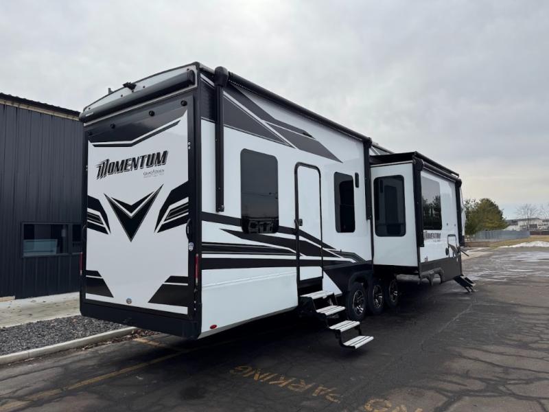 Grand Design Momentum M-Class 414M toy hauler fifth wheel highlights: