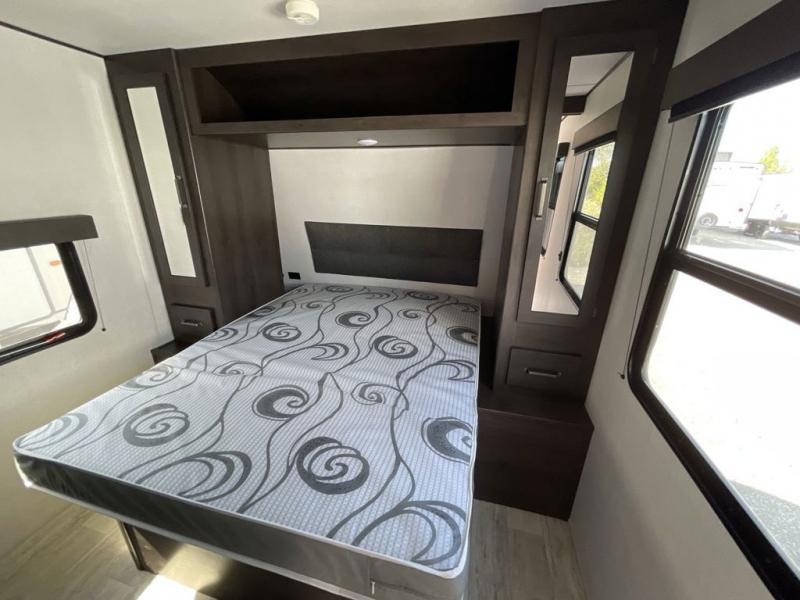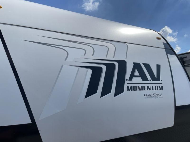 The Momentum MAV toy hauler travel trailers by Grand Design are designed to provide exactly what you need. The spacious garage provides tons of cargo space, with no wheel wells to get in the way. Additional storage includes magnetic storage door catches, underbed storage with a gas strut lift, and overhead consoles throughout. Conveniences like motion sensor lights and USB outlets will make your life easier, and you will be comfortable in all seasons with the 30K BTU furnace plus 15K BTU ducted air conditioning. The standard Solar Package comes with a 180W solar panel, a 40 Amp charge controller with Bluetooth, and a 12V refrigerator so you can go off-grid when the adventure calls for it.