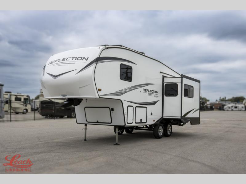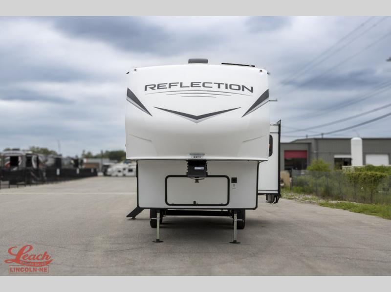 Each Reflection 100 Series fifth wheel by Grand Design is affordable and packed with luxury for unforgettable camping memories! The MorRyde CRE3000 suspension system and Goodyear Endurance tires will provide smooth towing from home to campground. And the solar package with a 180W solar panel, 60 Amp charge controller and 12V refrigerator will allow you to camp for longer periods of time and in more locations! A heated and enclosed underbelly with circulating heat is included in the Arctic 4-Seasons Protection Package, along with a double insulated roof and front cap, and thermofoil insulation under the holding tanks so you can camp all year long if you choose. You will appreciate having an on-demand water heater for hot showers after exploring, and the universal all-in-one docking station will let you monitor your RVs tanks levels and functions with ease. These models also include many luxurious interior features, such as premium Congoleum flooring, pleated shades, residential cabinetry, and matte black fixtures and hardware. Don't let the Reflection 100 Series fifth wheels pass you by!