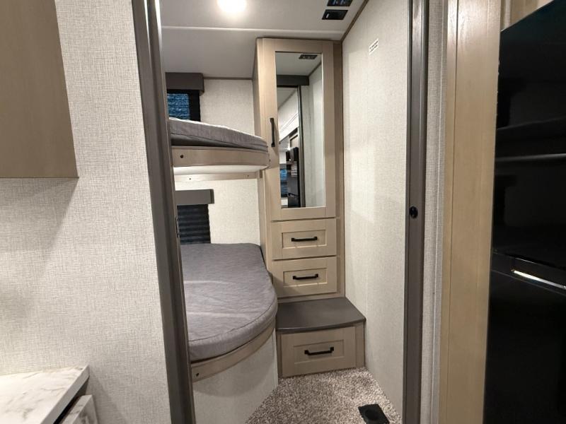 Family-ready and half-ton towable—the Reflection 100 Series 27BH delivers bunkhouse comfort with premium style!