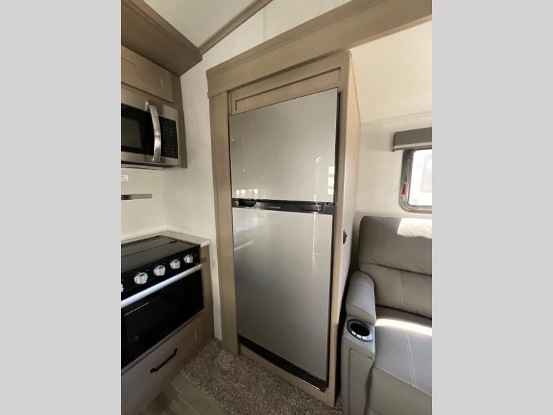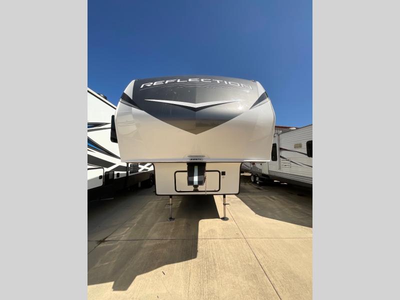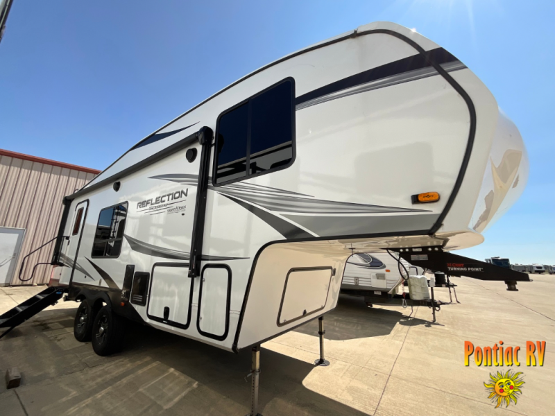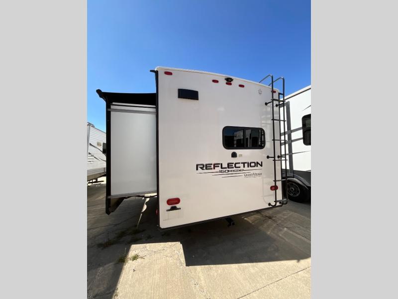 With any Reflection 150 Series fifth wheel by Grand Design, there is more available payload capacity and a broader range of half-ton trucks capable of towing this fifth wheel, and no slider hitch is needed thanks to the 90-degree turning radius which makes them short bed friendly and easier to tow. The mandatory Ultimate Power package provides a "One-Touch" automatic leveling system and a detachable power cord with LED light for easy setup, plus motion sensor pass-through lighting and entry lighting, and the Tire Linc TPMS will help you stay safe on the road. The interior offers residential luxury from the cabinetry and premium congoleum flooring, plus the booth dinette to the residential-style window treatment. Make your refined decision today!