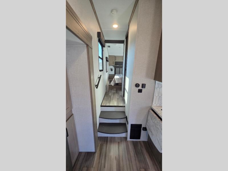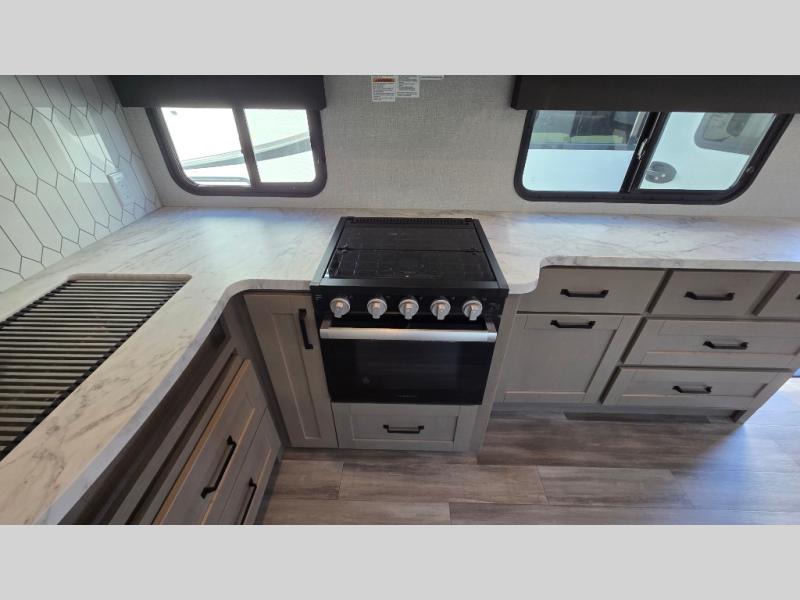 With any Reflection 150 Series fifth wheel by Grand Design, there is more available payload capacity and a broader range of half-ton trucks capable of towing this fifth wheel, and no slider hitch is needed thanks to the 90-degree turning radius which makes them short bed friendly and easier to tow. The mandatory Ultimate Power package provides a "One-Touch" automatic leveling system and a detachable power cord with LED light for easy setup, plus motion sensor pass-through lighting and entry lighting, and the Tire Linc TPMS will help you stay safe on the road. The interior offers residential luxury from the cabinetry and premium congoleum flooring, plus the booth dinette to the residential-style window treatment. Make your refined decision today!