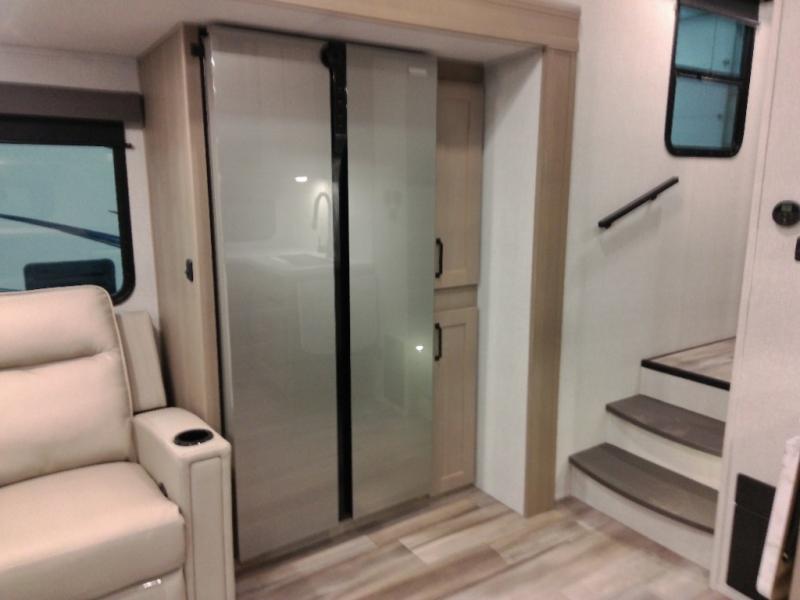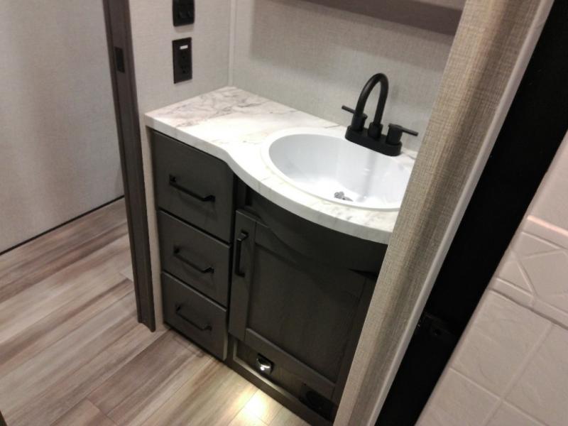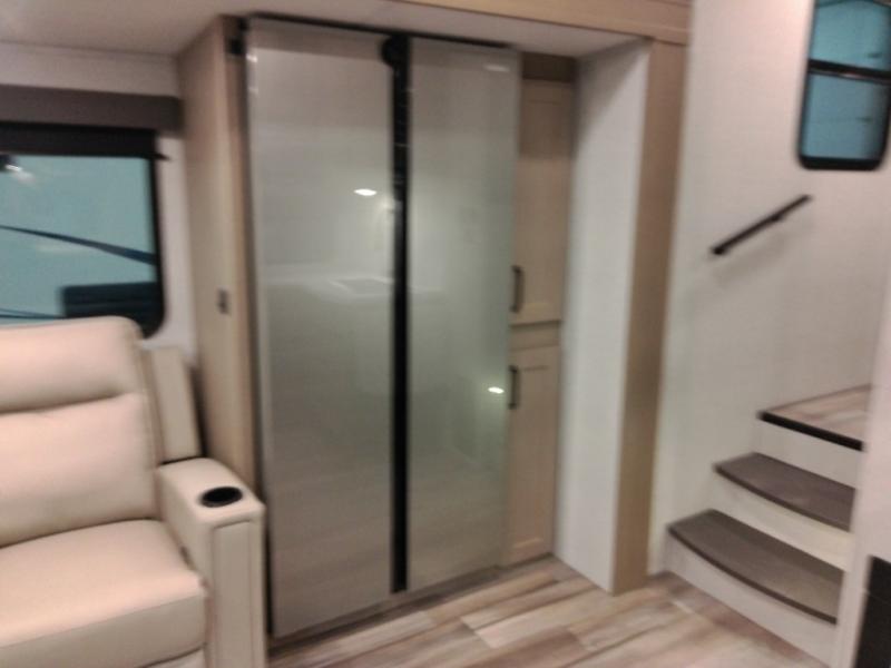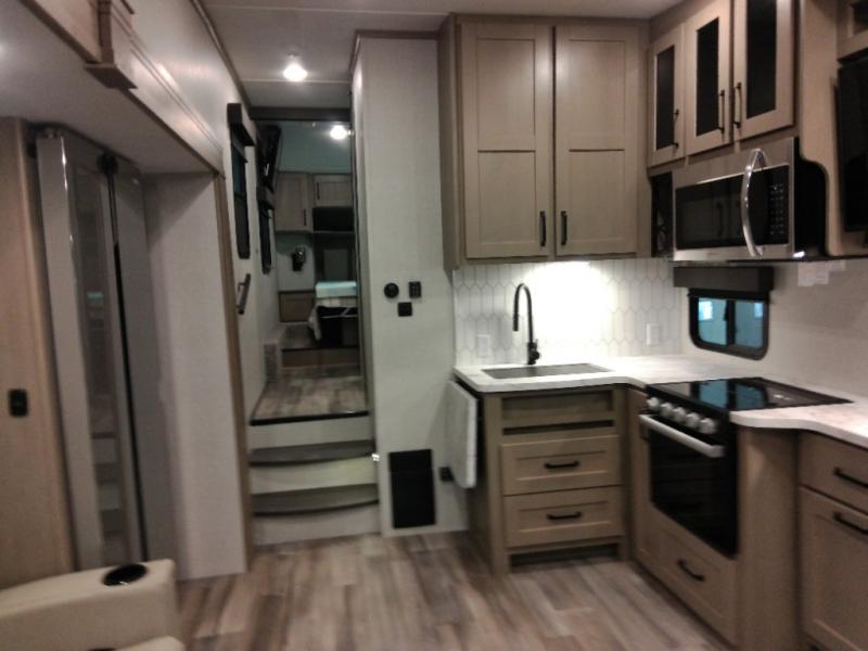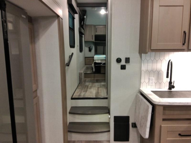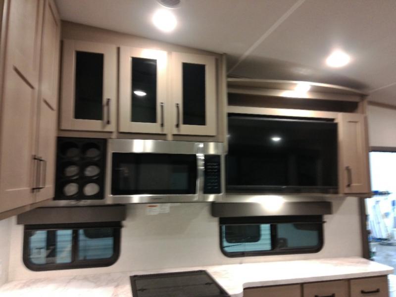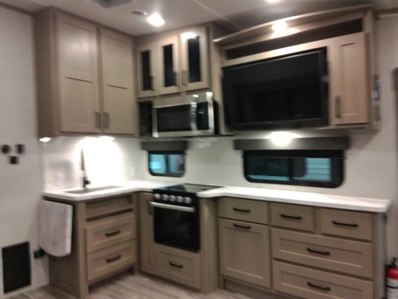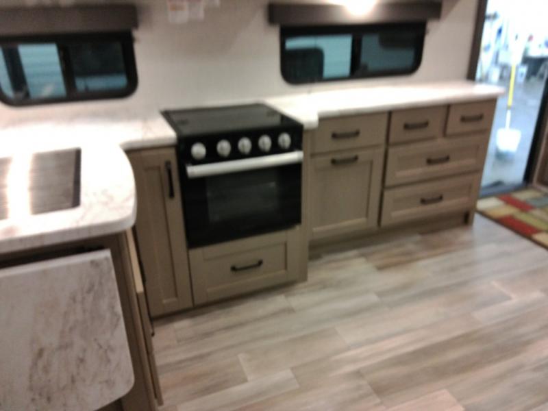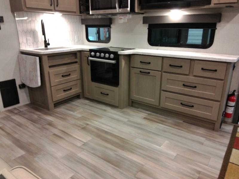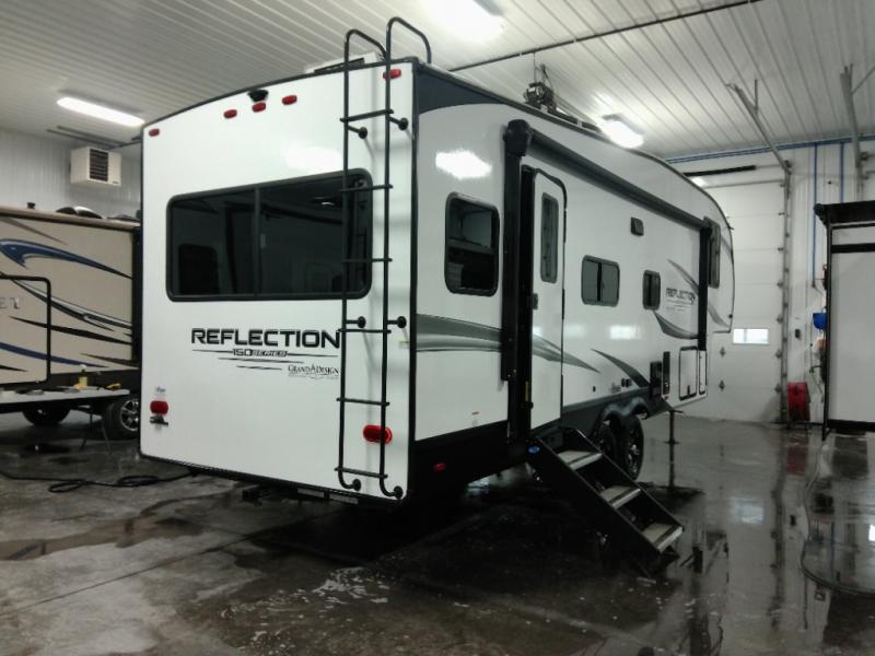With any Reflection 150 Series fifth wheel by Grand Design, there is more available payload capacity and a broader range of half-ton trucks capable of towing this fifth wheel, and no slider hitch is needed thanks to the 90-degree turning radius which makes them short bed friendly and easier to tow. The mandatory Ultimate Power package provides a "One-Touch" automatic leveling system and a detachable power cord with LED light for easy setup, plus motion sensor pass-through lighting and entry lighting, and the Tire Linc TPMS will help you stay safe on the road. The interior offers residential luxury from the cabinetry and premium congoleum flooring, plus the booth dinette to the residential-style window treatment. Make your refined decision today!