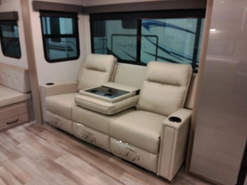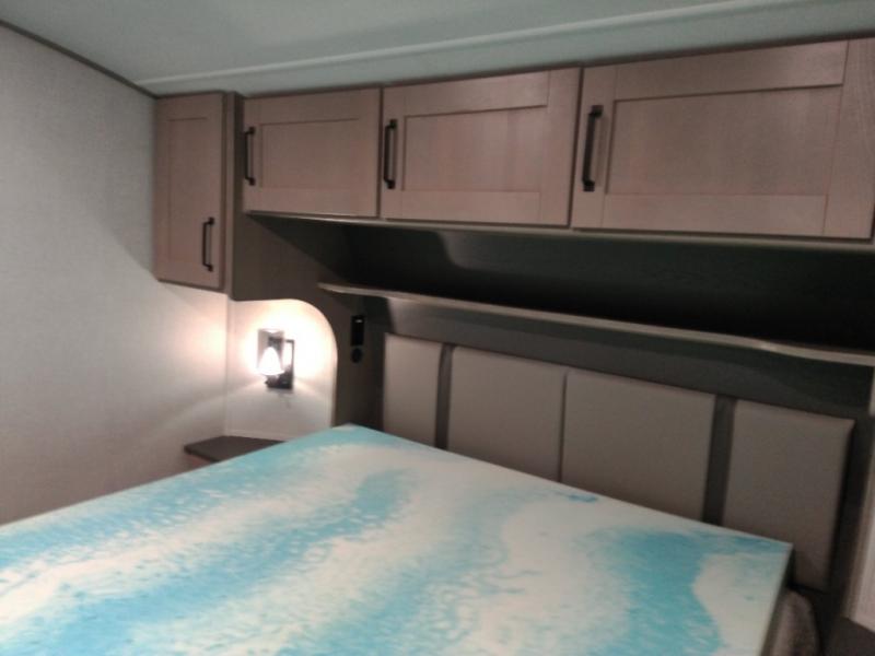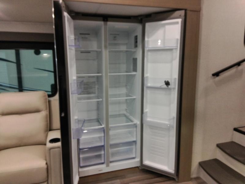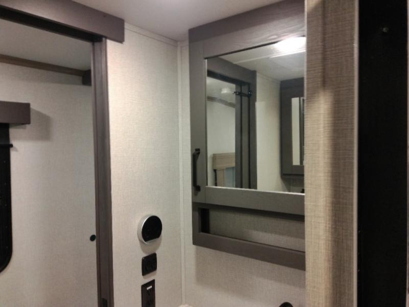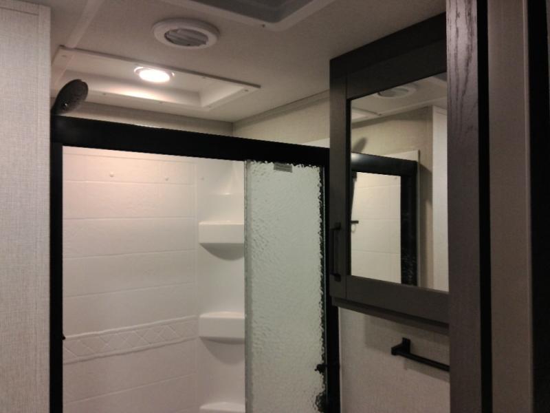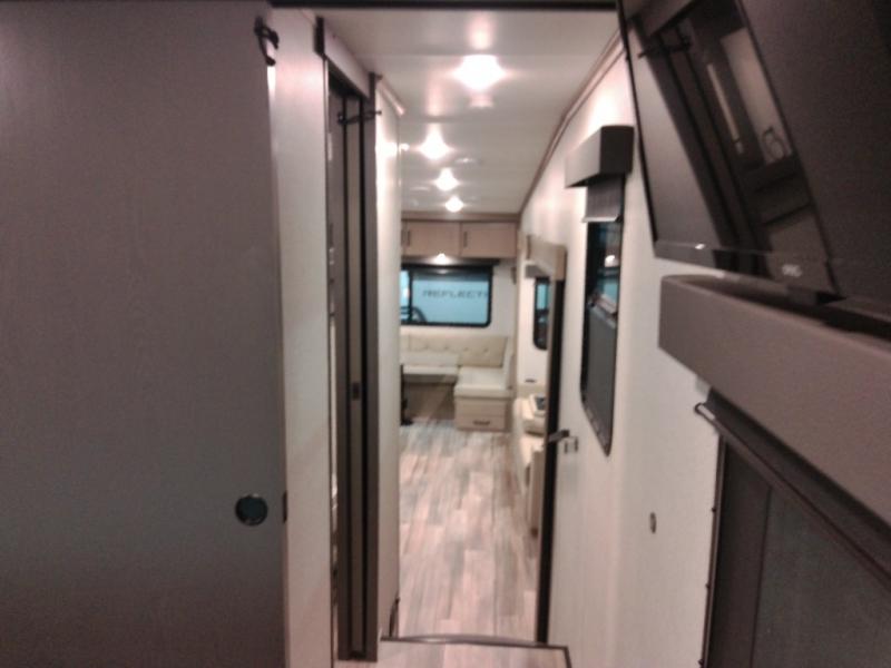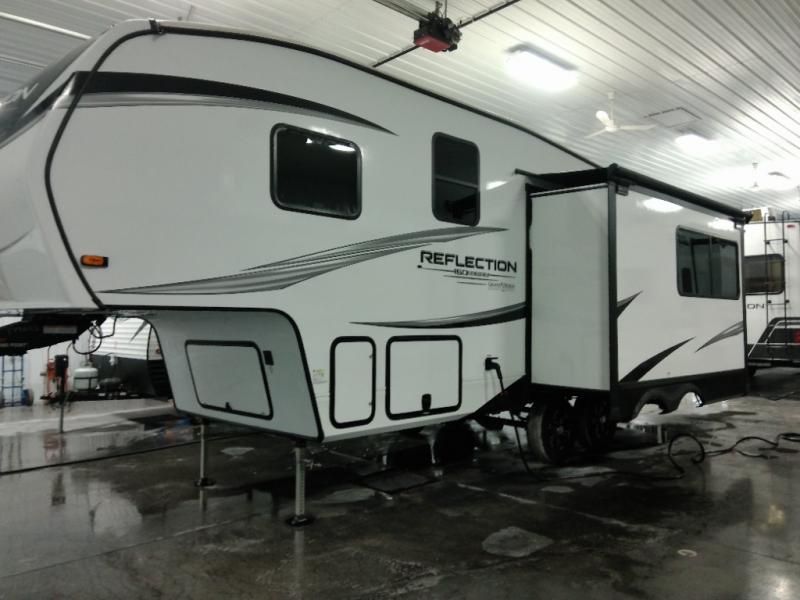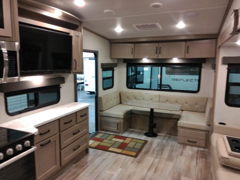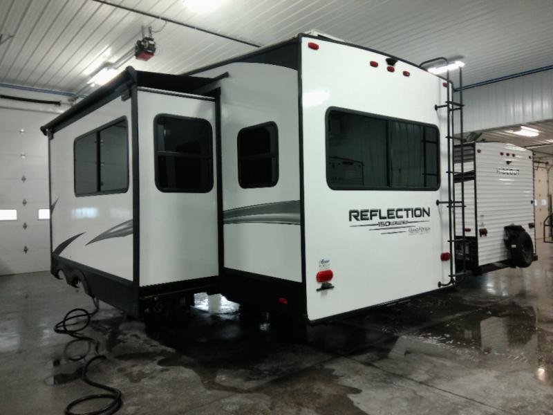 Feel right at home in this Reflection 150 Series with a private bedroom that includes a walk-around queen bed with storage on each side, windows, and a space savings sliding door. The full bathroom offers a walk-in shower, storage for your linens and a sliding door for easy access. When you get hungry, the cook will have an L-shaped kitchen area to make meals, plus full amenities including a 30" microwave, a flip-up counter extension, a pantry for your dry goods and a 16 cu. ft. refrigerator to store lots of food and cold beverages. You can dine at the rear U-shaped dinette lounge and enjoy the view out of all the windows or outside under the 18' electric awning. And the 78" theatre seating will be a nice place to relax and watch the 40" LED HDTV.
