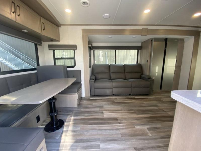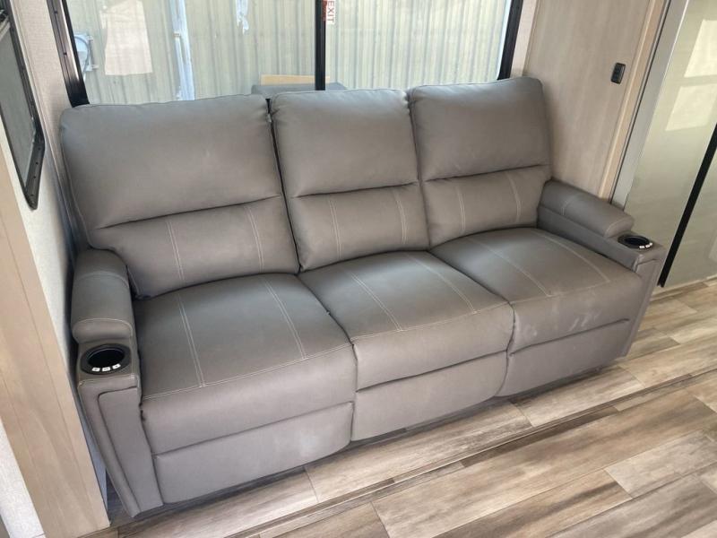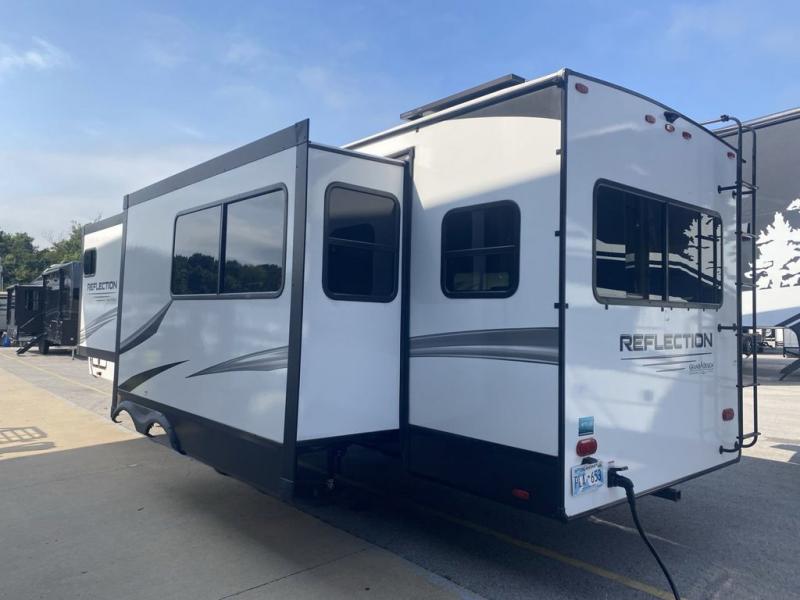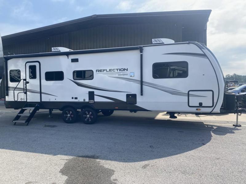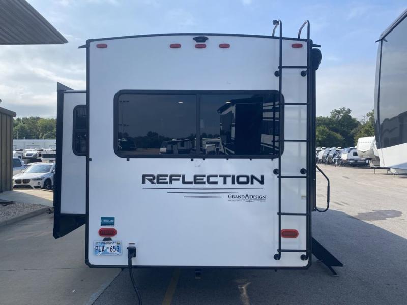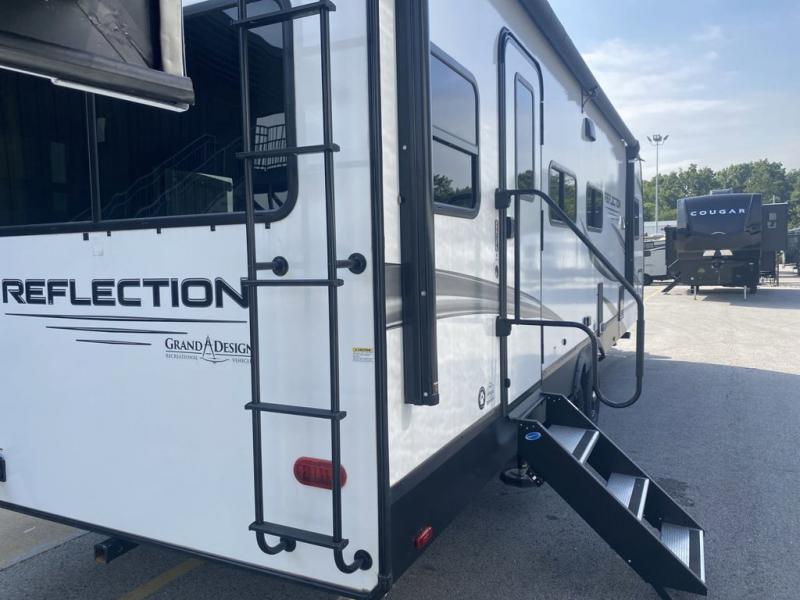 With any Reflection travel trailer by Grand Design, you will have a solar panel for off-grid camping and a 50 amp charge controller and inverter prep, a Universal All-In-One docking station, unobstructed pass-through storage, and nitrogen filled radial tires. Some other top features include the 30" stainless steel microwave, the maximum 7-foot headroom, and the ductless heating system with no vents in the floor to collect debris. Each is constructed of gel coat exterior sidewalls, residential 5" truss rafters, walk-on roof decking, a fiberglass and radiant foil roof and front cap insulation plus laminated aluminum framed side walls, roof and end walls in slide rooms. Choose luxury, value, and towability over all the others, take home a Reflection of your good taste!