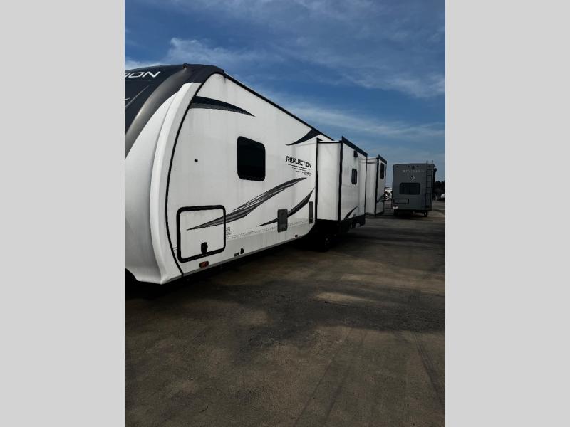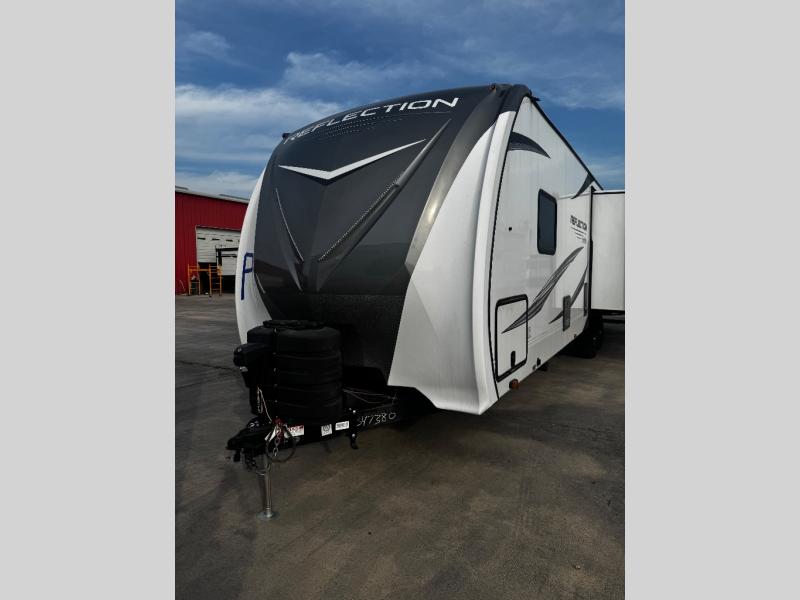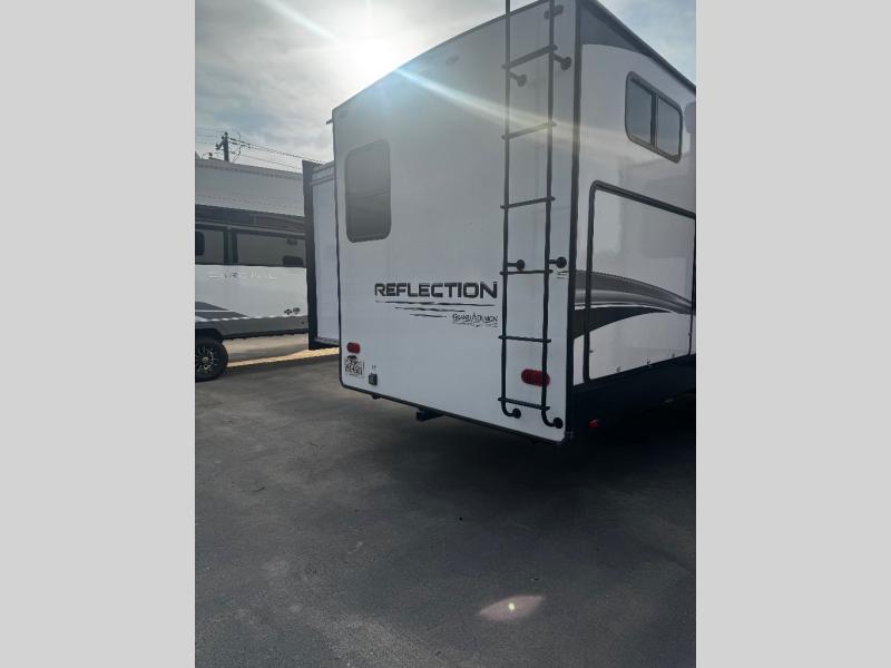 With any Reflection travel trailer by Grand Design, you will have a solar panel for off-grid camping and a 50 amp charge controller and inverter prep, a Universal All-In-One docking station, unobstructed pass-through storage, and nitrogen filled radial tires. Some other top features include the 30" stainless steel microwave, the maximum 7-foot headroom, and the ductless heating system with no vents in the floor to collect debris. Each is constructed of gel coat exterior sidewalls, residential 5" truss rafters, walk-on roof decking, a fiberglass and radiant foil roof and front cap insulation plus laminated aluminum framed side walls, roof and end walls in slide rooms. Choose luxury, value, and towability over all the others, take home a Reflection of your good taste!