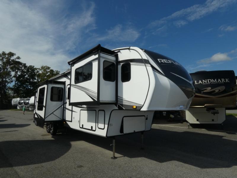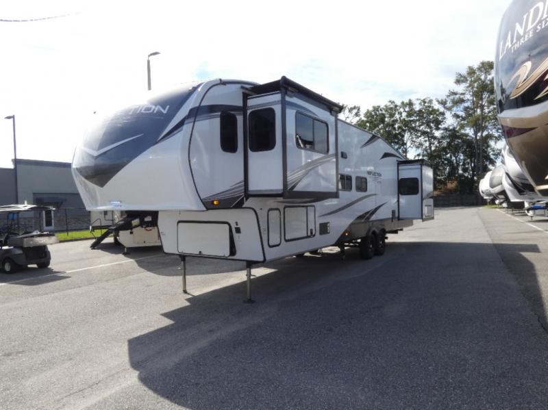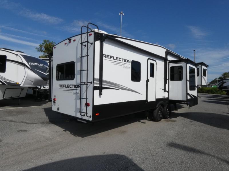 Each Reflection fifth wheel and travel trailer by Grand Design is packed with luxury features for an overall better camping experience! The MORryde 3000CRE suspension provides smooth towing to your destination and the durable construction materials mean you can enjoy your RV for years to come. These units include the Arctic 4-Seasons Protection Package that will extend your camping season thanks to the extreme temperature testing and maximum heating power. You will also appreciate the Solar Package that will allow you to do some off-grid camping and the Compass Connect system so you can control your RV's functions right from the palm of your hand. The interior of these travel trailers and fifth wheels are designed to make you feel at home with residential cabinetry, solid surface countertops, blackout roller shades, a spacious shower with a glass door, residential bedrooms, and the list goes on! Choose a Reflection today and start a new adventure tomorrow!