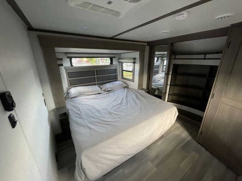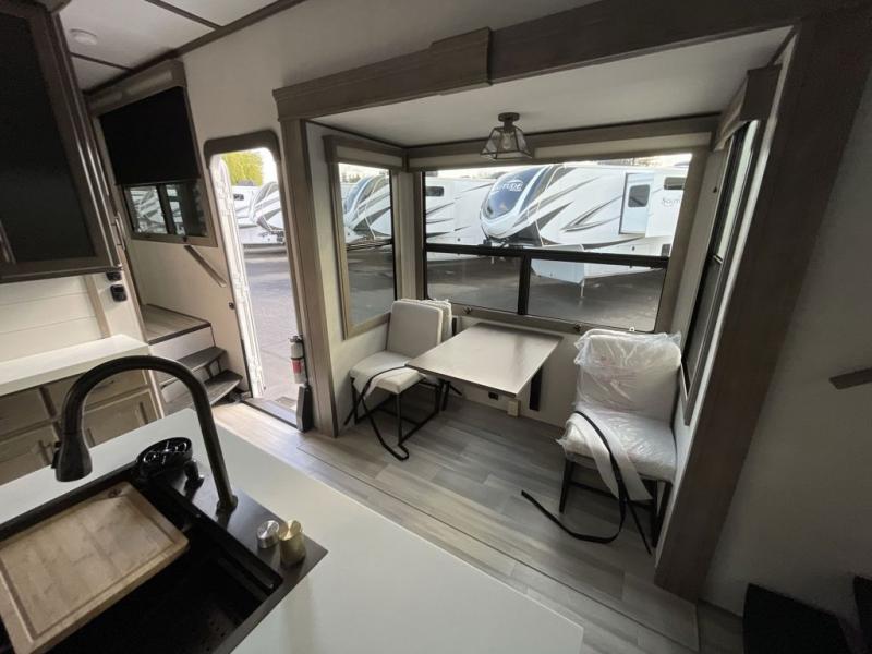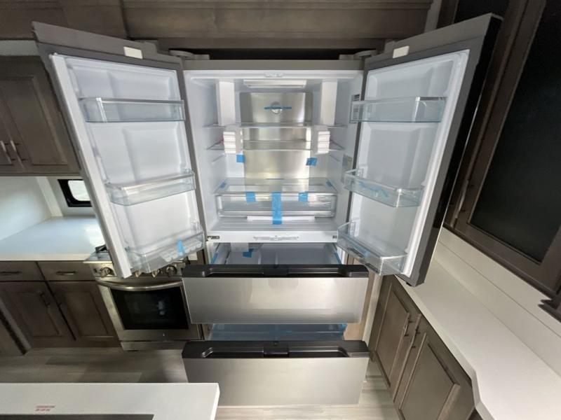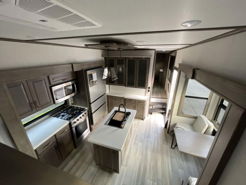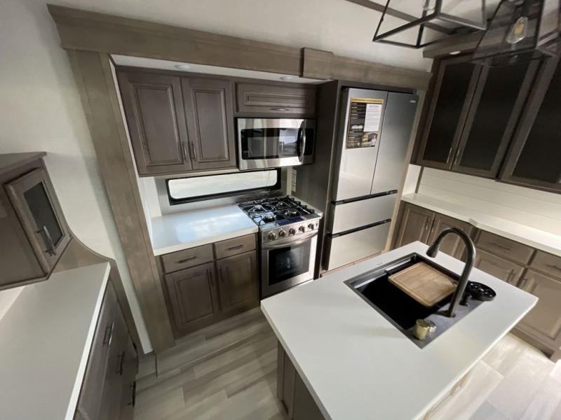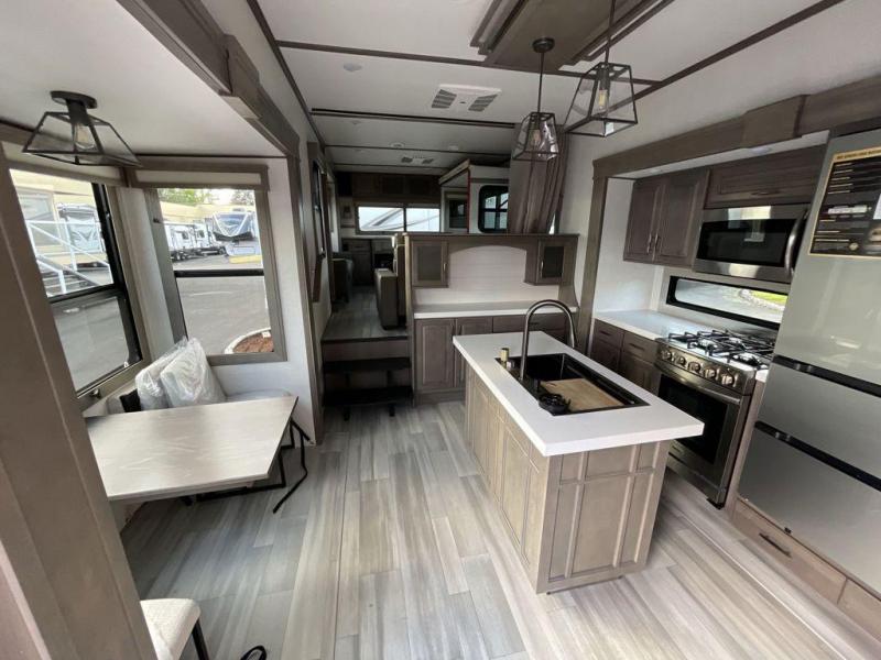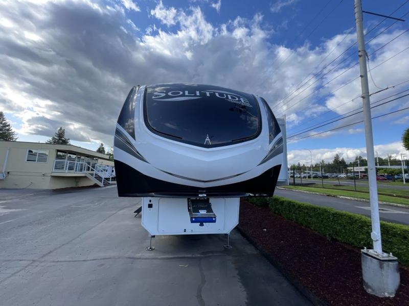 Step inside and immediately feel the difference: room to gather, cook, relax, and sleep in style. Mornings begin with sunlight streaming through panoramic windows, the chef preps meals on the island while guests lounge on tri-fold sofas, and evenings are spent around the fireplace or under the awning watching the sunset. With five slides and expansive storage, there’s space for everyone’s belongings without sacrificing living space. Whether you’re camping in the mountains, by a lake, or exploring new regions, the Solitude 376RD turns every destination into a luxurious retreat.