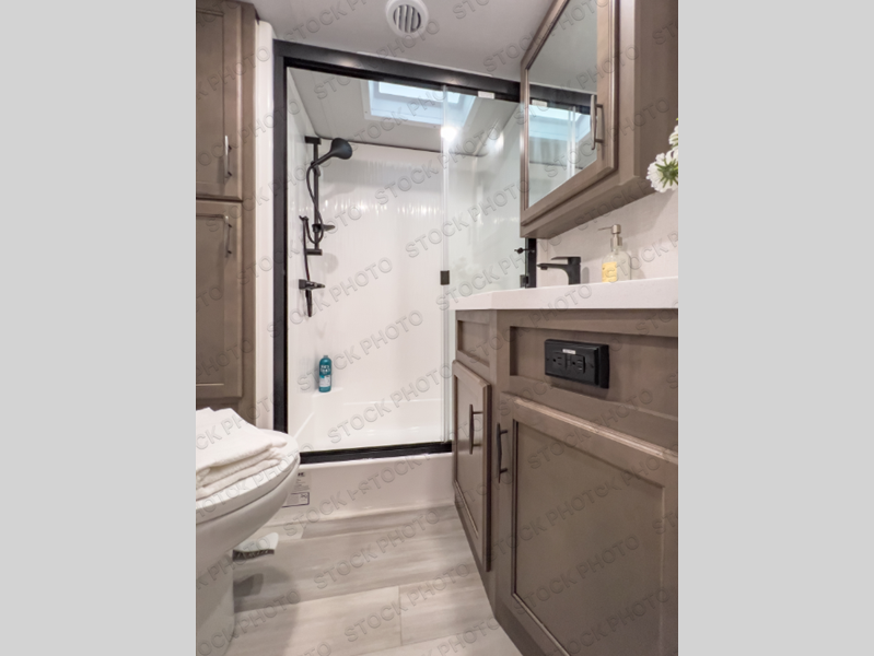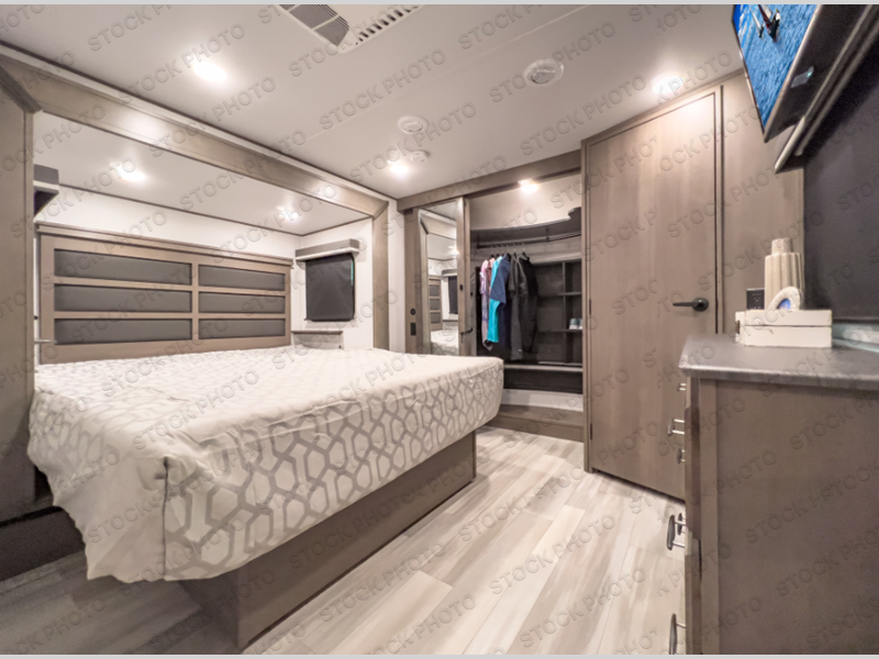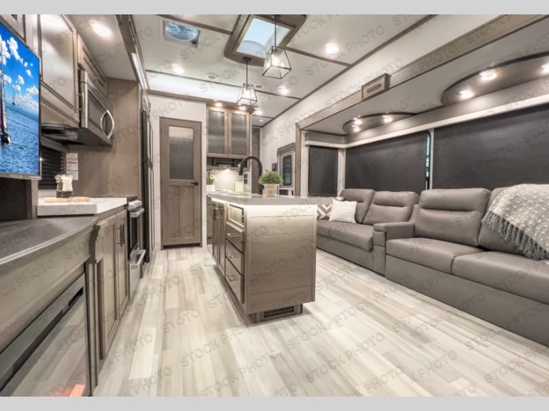 With any Solitude S-Class fifth wheel by Grand Design you will appreciate the Max Built Construction Package that features a 101" wide-body, gel coat exterior sidewalls, heavy-duty 7,000 lb. axles, plus many more durable construction materials. The self-adjusting brakes and the MORryde CRE3000 suspension system will provide a smooth towing experience, and each model includes heavy duty 17.5" H-rated tires with NitroFill. Some of the features you are sure to love are included in the Residential Living Package, like the solid surface countertops and sink covers, the hardwood cabinet doors, the night stands with USB ports, and the Rockford Fosgate stereo entertainment system with HDMI and App controls. These fifth wheels are extended-stay approved thanks to the Weather-Tek Package with a 35,000 BTU high-capacity furnace, the Stealth A/C system, and many high-end residential finishes to make you feel like you taken home with you!