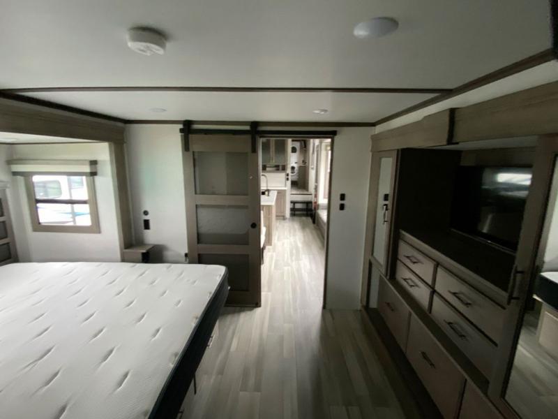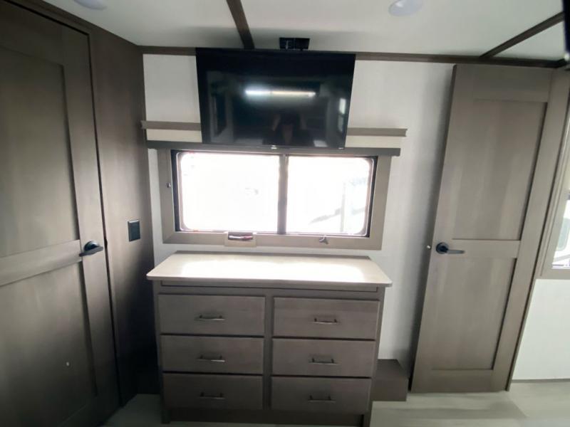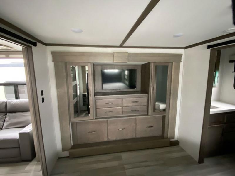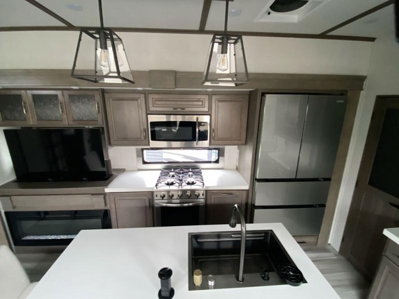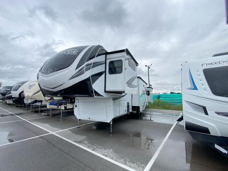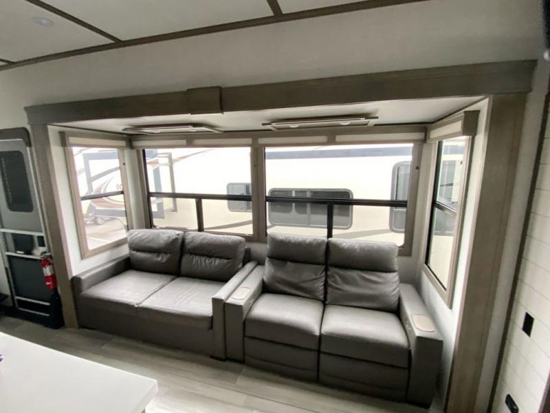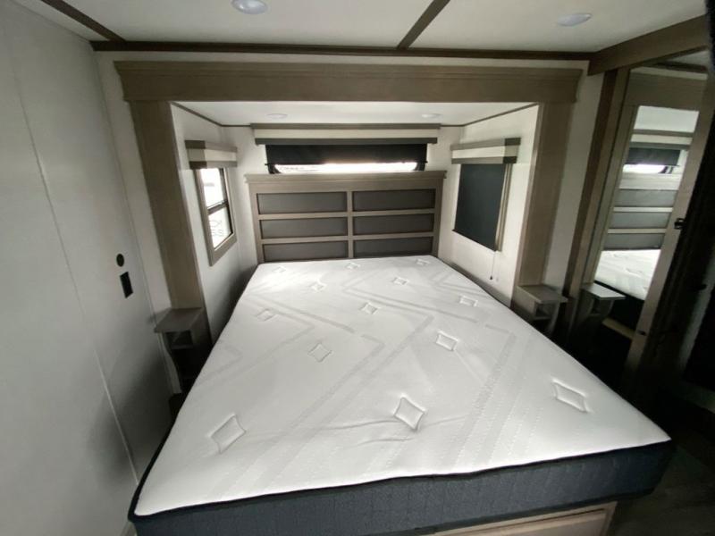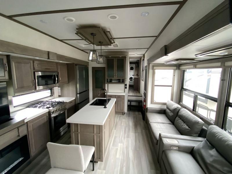 Each Solitude fifth wheel by Grand Design features a 101" wide-body construction, heavy duty 7,000 lb. axles, frameless tinted windows, and high-gloss gel coat sidewalls. You can camp year around thanks to the Weather-Tek Package that includes a 35K BTU high-capacity furnace, an all-in-one enclosed and heated utility center, and a fully enclosed underbelly with heated tanks and storage. Inside, you'll love the premium roller shades, hardwood cabinet doors, solid surface countertops and sinks, plus residential finishes throughout to make you truly feel at home. Each model also includes a MORryde CRE3000 suspension system, self adjusting brakes, and a MORryde pin box that will provide smooth towing from home to campground. Affordable luxury is possible with the Solitude fifth wheels; choose yours today!