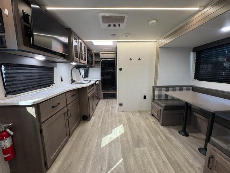 The only thing you need to worry about when you go camping is where to park this Transcend Xplor travel trailer! You'll have everything you need each day to prepare meals, including a three-burner cooktop, a microwave oven, and plenty of counter space. The front queen bed includes tapered overhead cabinets and a privacy curtain that will give you your own space if you have guests staying over on the U-shaped dinette. Choose the optional theater seats in place of the dinette, and you won't even know you're away from home!
