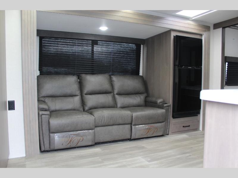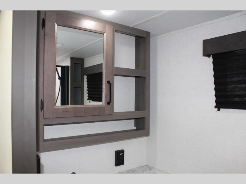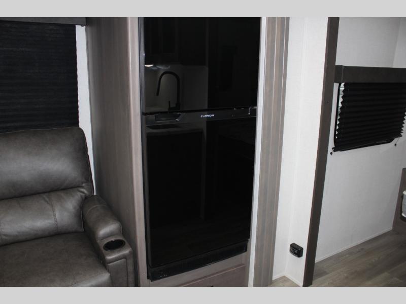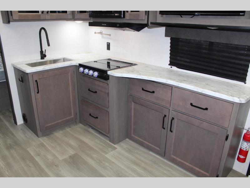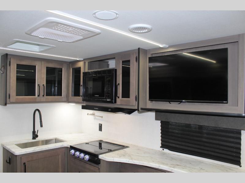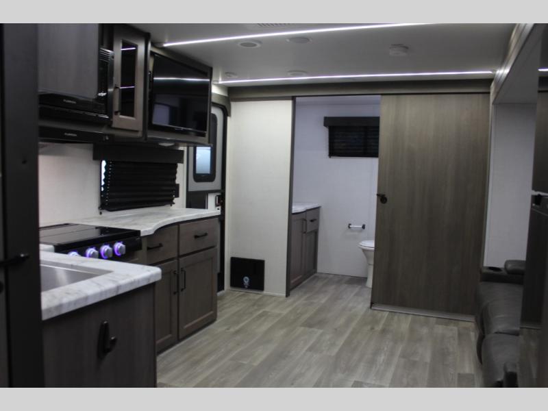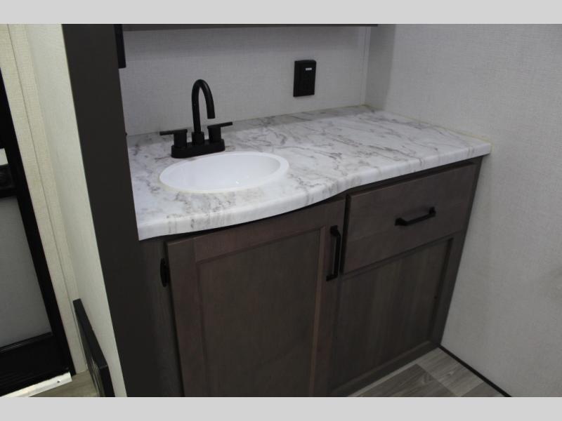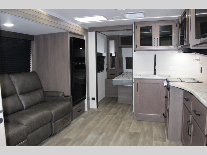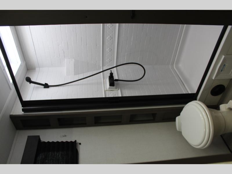This travel trailer will feel just like home with its private bedroom that includes a queen bed, overhead storage, and TV prep if you choose to bring along your own television. The full rear bath is both spacious and tucked away for privacy, and the main living area includes a slide out for added space. Here, you'll enjoy dining around the U-shaped dinette or relaxing on the optional theater seats if you go that way. Whether you're cooking dinner in the spacious kitchen, relaxing under the 17' power awning with an LED light, or cleaning up in the walk-in shower, you will always have a good time in this travel trailer!