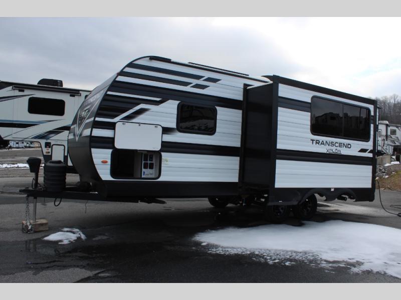 The customer-focused, quality-built Transcend Xplor travel trailers by Grand Design are your ticket to fun and adventure. You will appreciate the power tongue jack when it comes time to set up, as well as the all-in-one utility center and the detachable power cord with an LED light. These models include many outlets throughout, USB ports to charge your gadgets, and a JBL exterior speaker to listen to your favorite tunes. The interior of the Transcend Xplor will have you feeling right at home with upgraded residential furniture, residential countertops, residential cabinet doors, and the list goes on!