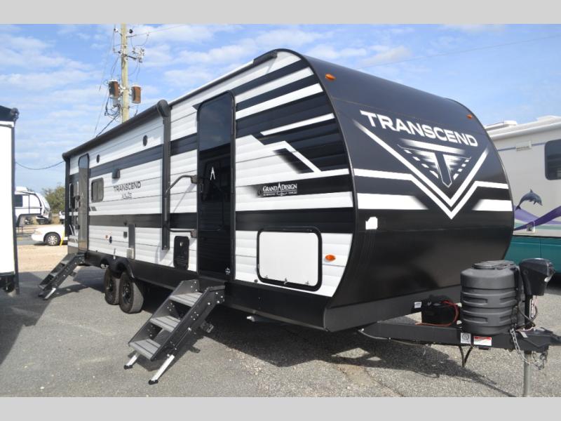 The customer-focused, quality-built Transcend Xplor travel trailers by Grand Design are your ticket to fun and adventure. You will appreciate the power tongue jack when it comes time to set up, as well as the all-in-one utility center and the detachable power cord with an LED light. These models include many outlets throughout, USB ports to charge your gadgets, and a JBL exterior speaker to listen to your favorite tunes. The interior of the Transcend Xplor will have you feeling right at home with upgraded residential furniture, residential countertops, residential cabinet doors, and the list goes on!