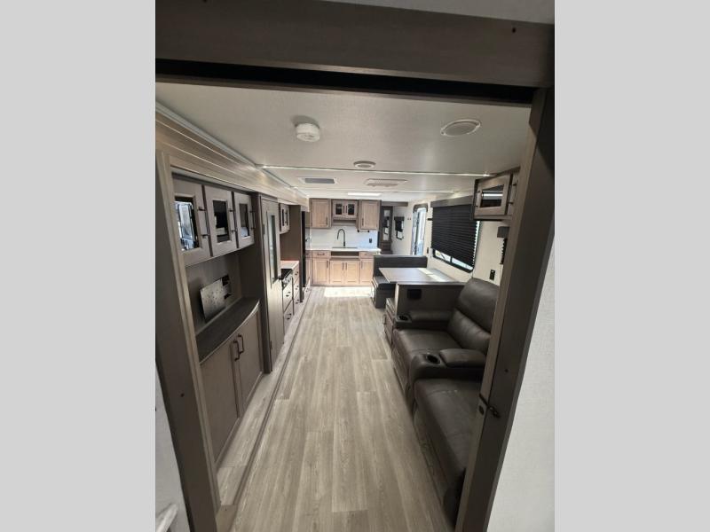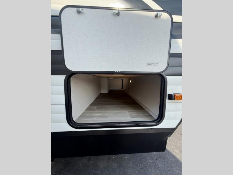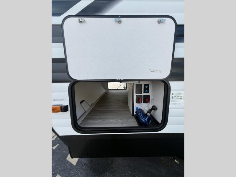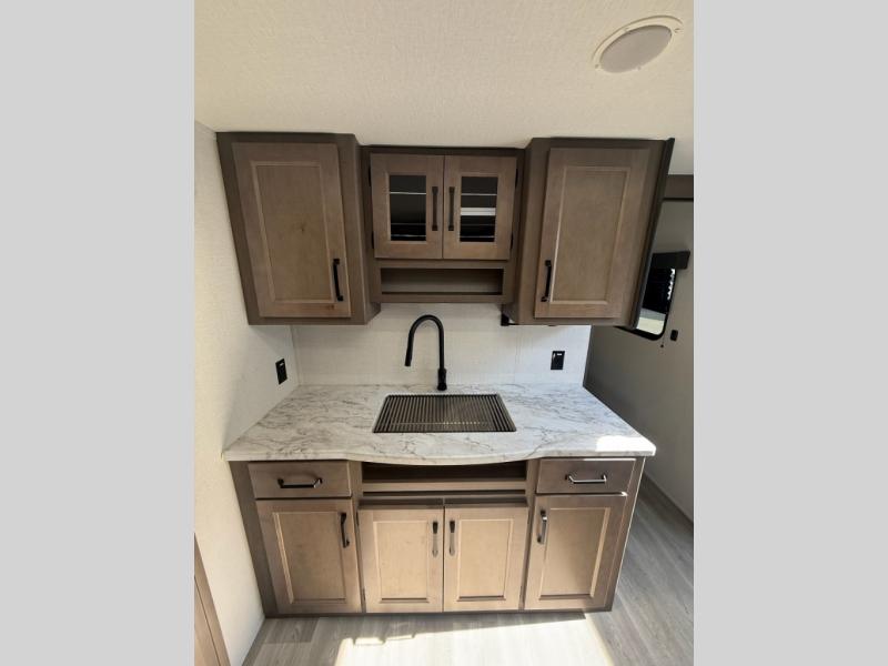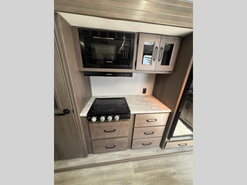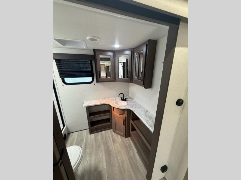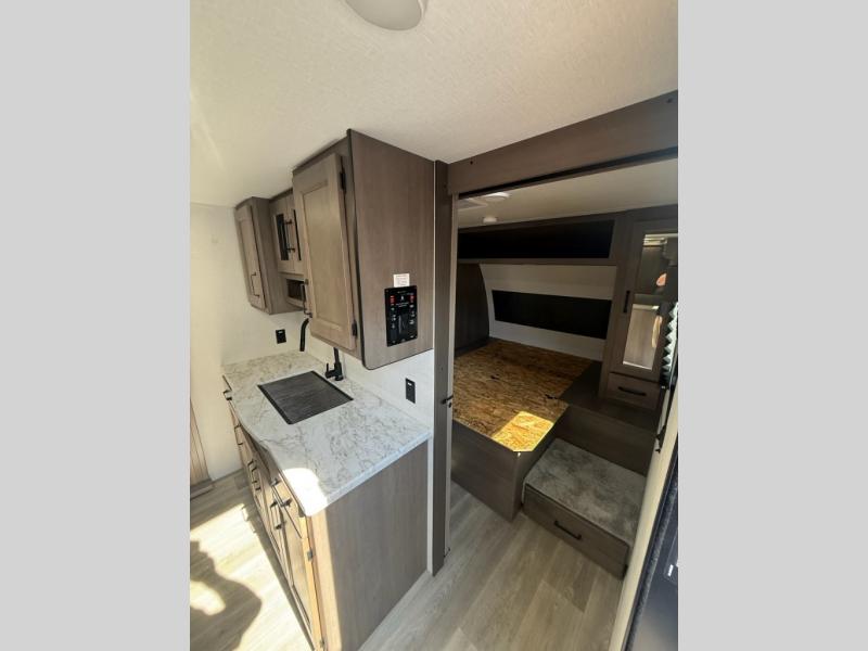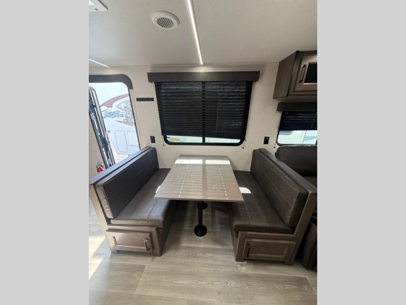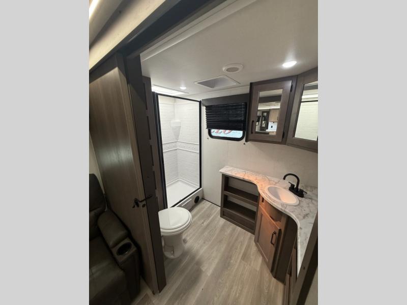 Your search for the perfect couple's trailer is over with this RV in tow! You will enjoy your own private bedroom up front with a queen bed, overhead storage, and TV prep if you choose to bring along your own television. The spacious full rear bath includes a linen closet and a walk-in shower to easily clean up each day. Relax on the theatre seating after a long day outdoors, or you can choose the optional sleeper sofa if you need additional sleeping space. The booth dinette can also be used for an overnight guest or two little ones. This model also includes plenty of storage space and plenty of counter space to prep and cook at-home meals!