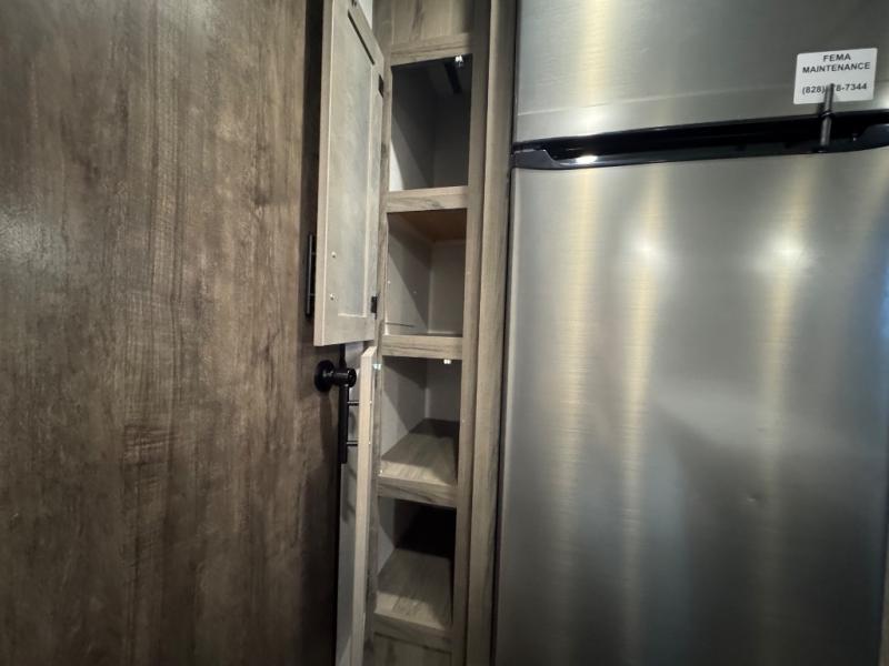 Easy-to-tow and easy to love, this 'Show Stopper' travel trailer is perfect for you! You can prepare meals each day on the two burner cooktop, dine at the booth dinette, and clean up in the full rear bath that includes plenty of counter space. There is a front bedroom with an RV queen bed, plus two wardrobes on either side of the bed for convenience. Start camping today!