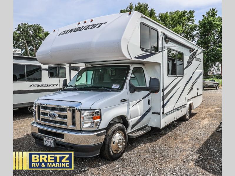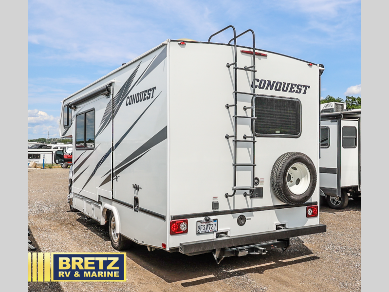 Each one of these Gulf Stream RV Conquest Class C gas motorhomes is built with a Cradle of Strength® on either the Ford E350 or E450 chassis depending on the model! Their construction also consists of a welded aluminum perimeter frame, an EPDM rubber roof, and high gloss white fiberglass sidewalls with Azdel substrate to prevent rotting. The included Conquest Luxury Package comes with vinyl flooring throughout for an easier clean, upgraded designer graphics, and a multimedia center with a 9" screen, Apple CarPlay and Android Auto and an AM/FM stereo. The exterior is just as accommodating with its hot and cold shower, 7,500 lb. hitch, electric awning with LED lights, and more!