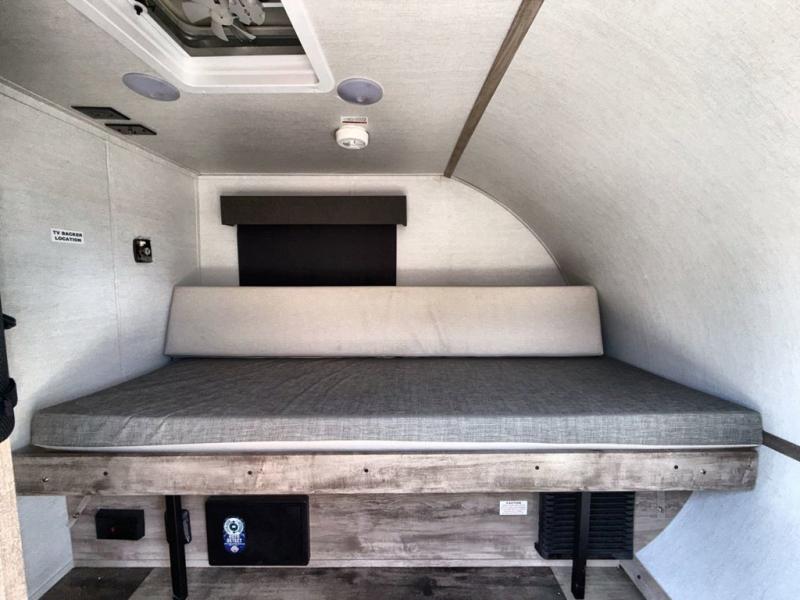 Each one of these Gulf Stream RV Trail Boss teardrop trailers are incredibly light and nimble in a rugged package! The all-terrain radial tires will take you off the beaten path, and the front and side diamond plate rock guard will protect your unit from road debris. Included in the Teton package is a smooth front, a lift kit with heavy duty tires, electric brakes, a solid entry step to safely enter, and a 100W roof-mount solar panel with controller so you can go off grid. Stay cool on a summer day with the air conditioner and warm on a cool day with the 19,000 BTU gas furnace. You will also appreciate the omni-directional rooftop TV antenna and multiple 110V and USB power outlets to keep everything charged. Start your greatest adventures today!