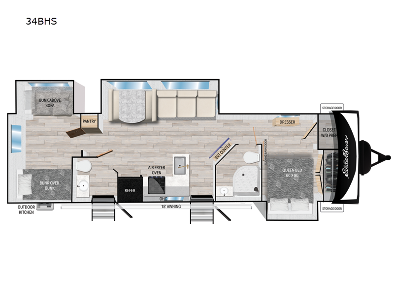 Heartland Eddie Bauer travel trailer 34BHS highlights: