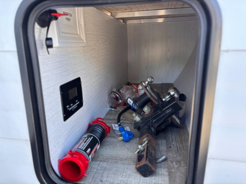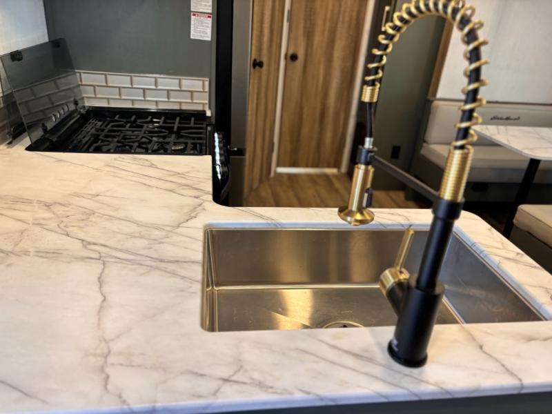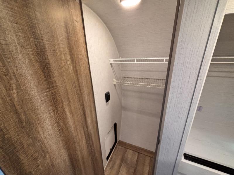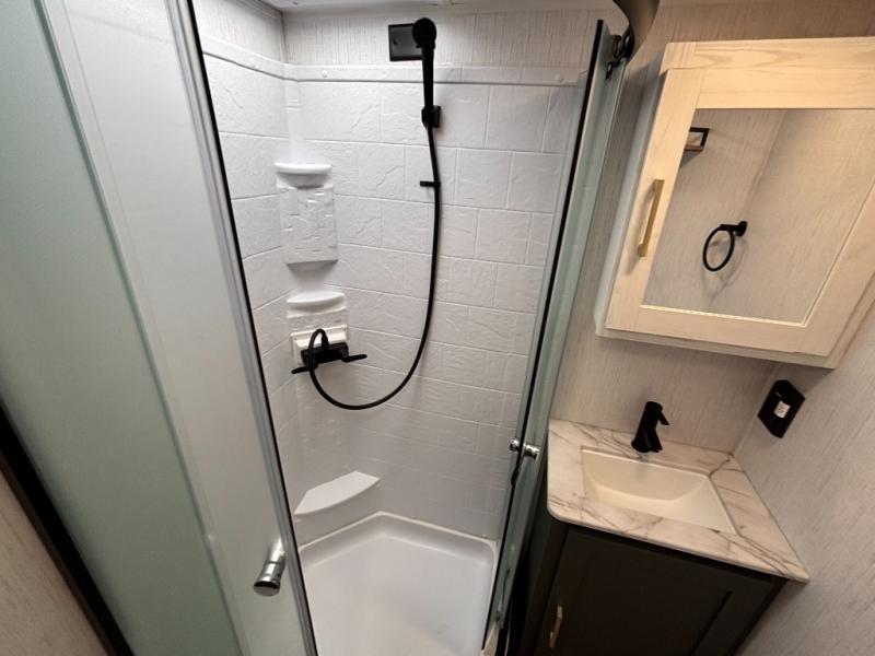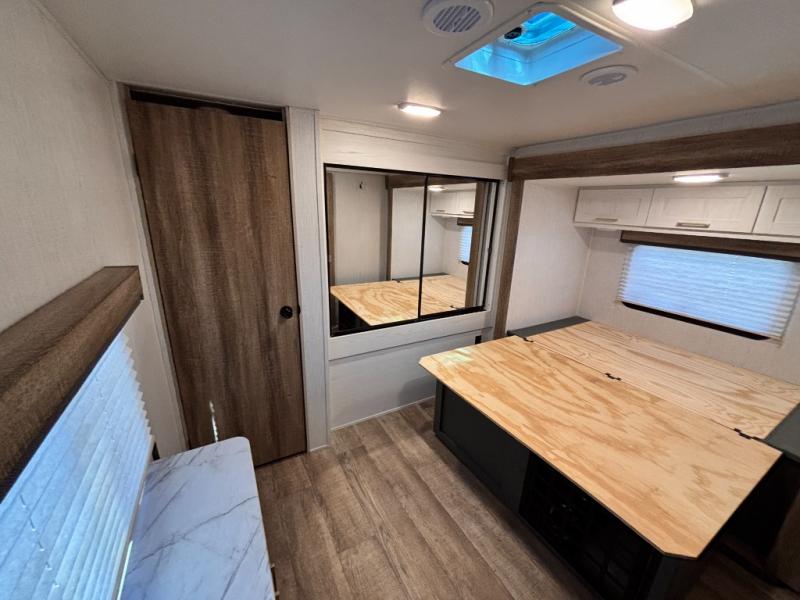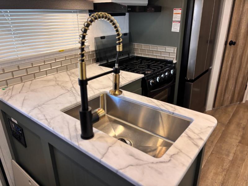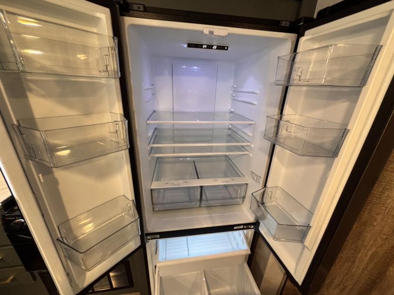 There is convenience found all throughout this travel trailer! Starting with the dual entry doors with one of them leading directly into the half bathroom. The kiddos will have their own privacy with the rear private bunkhouse which has a set of bunk beds and a slide with a bunk bed over a sofa. You will enjoy your own privacy with the front private bedroom that has a queen bed slide across from a dresser, a sliding barn door, a front large wardrobe and even a closet that is prepped to add a washer and dryer to it. Meals can be made easy with the fully equipped kitchen which even has an air fryer oven, plus you can cook meals while breathing in fresh air with the outdoor kitchen. Everyone can gather together at the booth dinette for meals, games, and even transform it into an extra sleeping space. The sofa is a great place to wind down at night by the entertainment center with a 39" TV and fireplace!