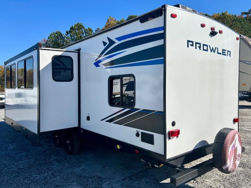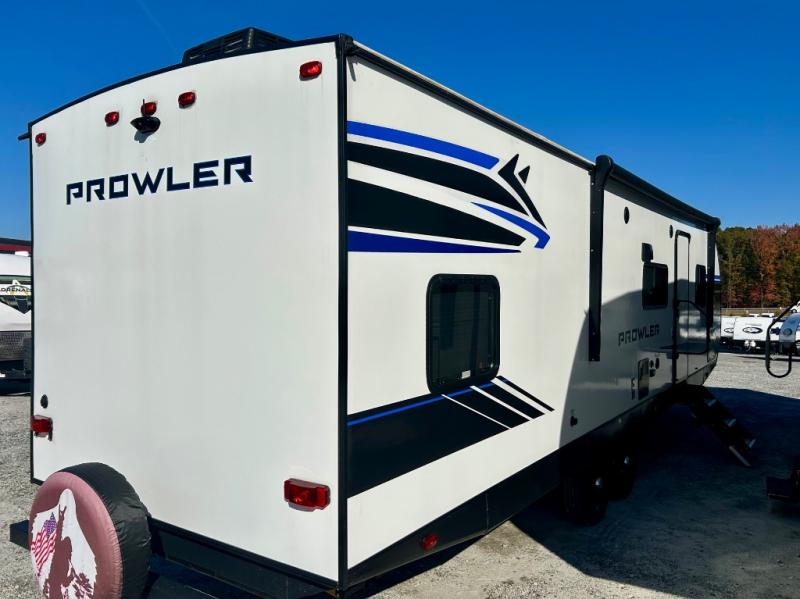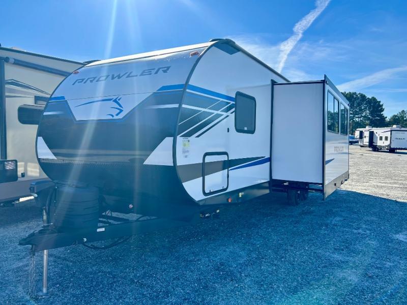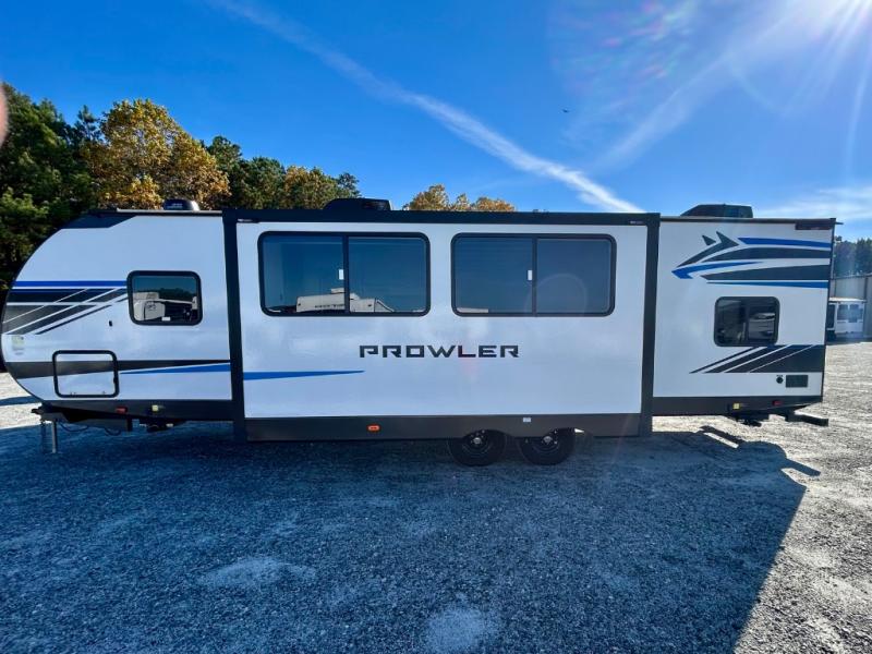 Get ready for comfortable and easy camping with the Prowler travel trailers by Heartland. These models feature durable construction with a performastructure aluminum front wall, a cambered structural steel I-beam frame, and a fully walkable roof. The MEGA bright pass-through storage features 52 cu. ft. of exterior storage with mega sized access doors, LED lights, and a finished interior to keep your gear secure. You'll fall in love with the at-home kitchen the includes Duralast countertops, a residential refrigerator, plus a stainless steel double bowl undermount sink for easy clean-up. These travel trailers also feature panoramic windows, an EZ clean interior, USB charging ports throughout, and many more comforts! Don't let the Prowler travel trailers slip away. Don't let the Prowler travel trailers slip away. Choose your favorite floorplan today!